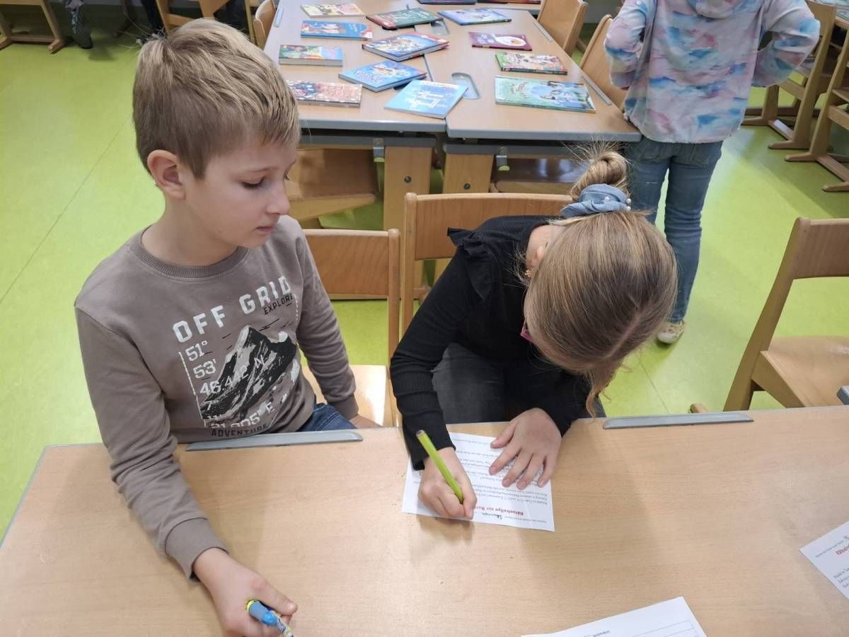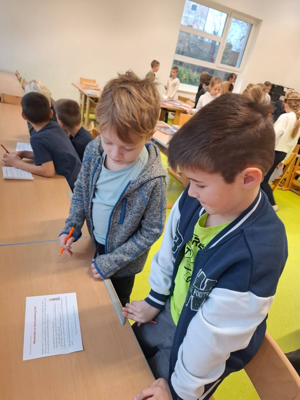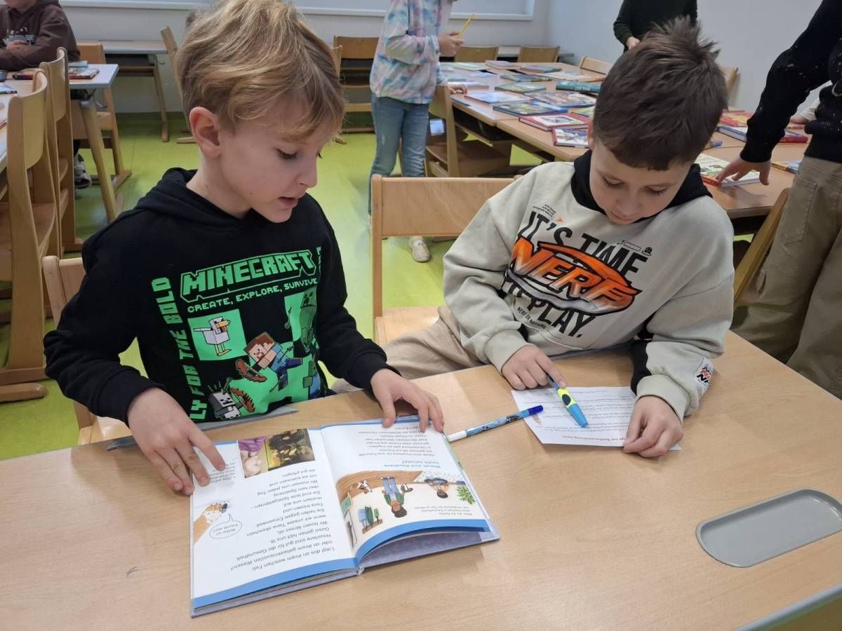 Damit das Christkind weiß, was es bei seinem Besuch zu Weihnachten mitbringen könnte, hatten wir auch heuer wieder die alljährliche Buchausstellung der Fa. Zweymüller zu Gast. Hierfür beliefert uns die Buchhandlung mit 5 gr. Kisten Büchern, die wir im Lehrerinnenkollegium dann für eine Woche an der Schule präsentieren dürfen. Zum Abschluss gab es eine kleine Leserallye, bei der die Schüler/innen im Tandem 5 Fragen beantworten mussten. Beim Weihnachtswortgottesdienst haben dann alle Kinder, die die richtigen Antworten gefunden haben, die Chance auf den Gewinn einer tollen Überraschung. Mal schauen, wer dann das große Los ziehen wird ...