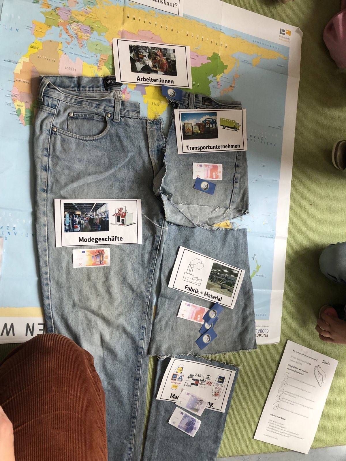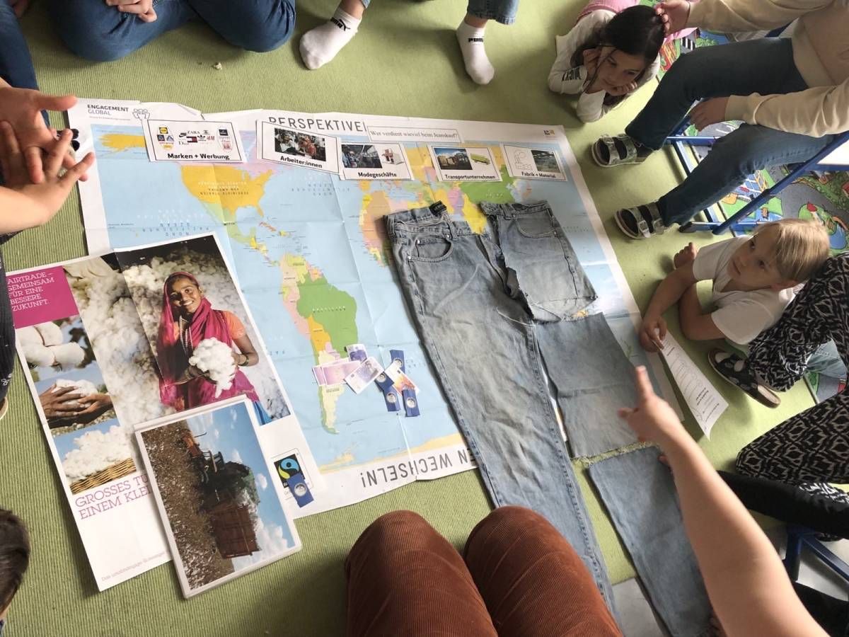 Ist es wirklich so uncool und nervig, dass ich zur Schule gehen muss? Wie geht es Kindern in aller Welt, was machen sie während eines Vormittags (oder Nachmittages)? Wir alle tragen sie – die beliebte und weltberühmte Jeans. Woher diese eigentlich kommt, war Teil unserer Recherche mit der Organisation Südwind, die uns über den langen Weg der Jeans von der Herstellung bis hin zum eigenen Schrank vertraut machte. Man wird dann ein bisschen ehrfürchtiger, wenn man erfährt, dass oftmals Kinder viele Stunden in Fabriken arbeiten müssen, in dieser Zeit keine Bildung erfahren dürfen, und wir voni billigpreisigen Kleidungsstücken in großem Maße profitieren – das soll nicht heißen, dass Billigprodukte immer auf Kosten anderer gehen, jedoch sollen unsere Kinder ein kritisches Denken und Nachfragen als Grundlage ihrer Entscheidungen erkennen. Vielen Dank hier an dieser Stelle an die Gemeinde, die diesen Workshop zur Gänze finanziert hat!