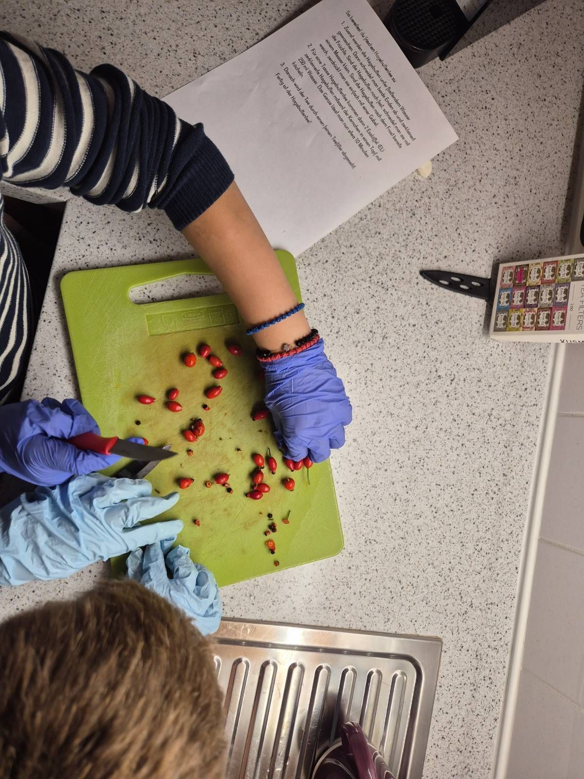 Im Geschäft gibt es ihn zu kaufen und viele Sorten mehr ... aber wie eigentlich wird Hagebuttentee gemacht? Darüber haben sich einige Kinder mit Fr. Lehrerin Irene Gedanken gemacht: Zuerst ging es durch Feld und Flur auf der Suche nach den Hagebutten, diese wurden geschnitten, heimtransportiert, gewaschen, geschnitten und schließlich zum Tee im Häferl verarbeitet. So einfach und dabei so gut!