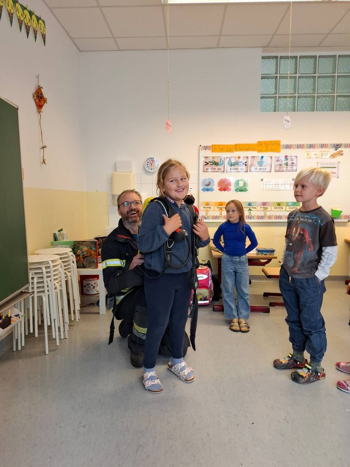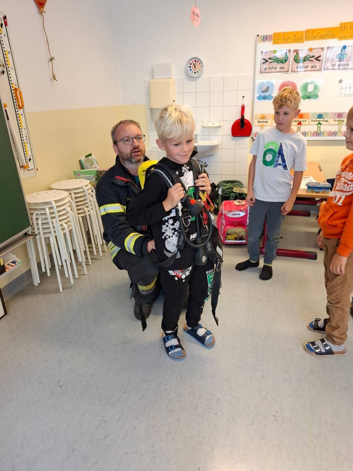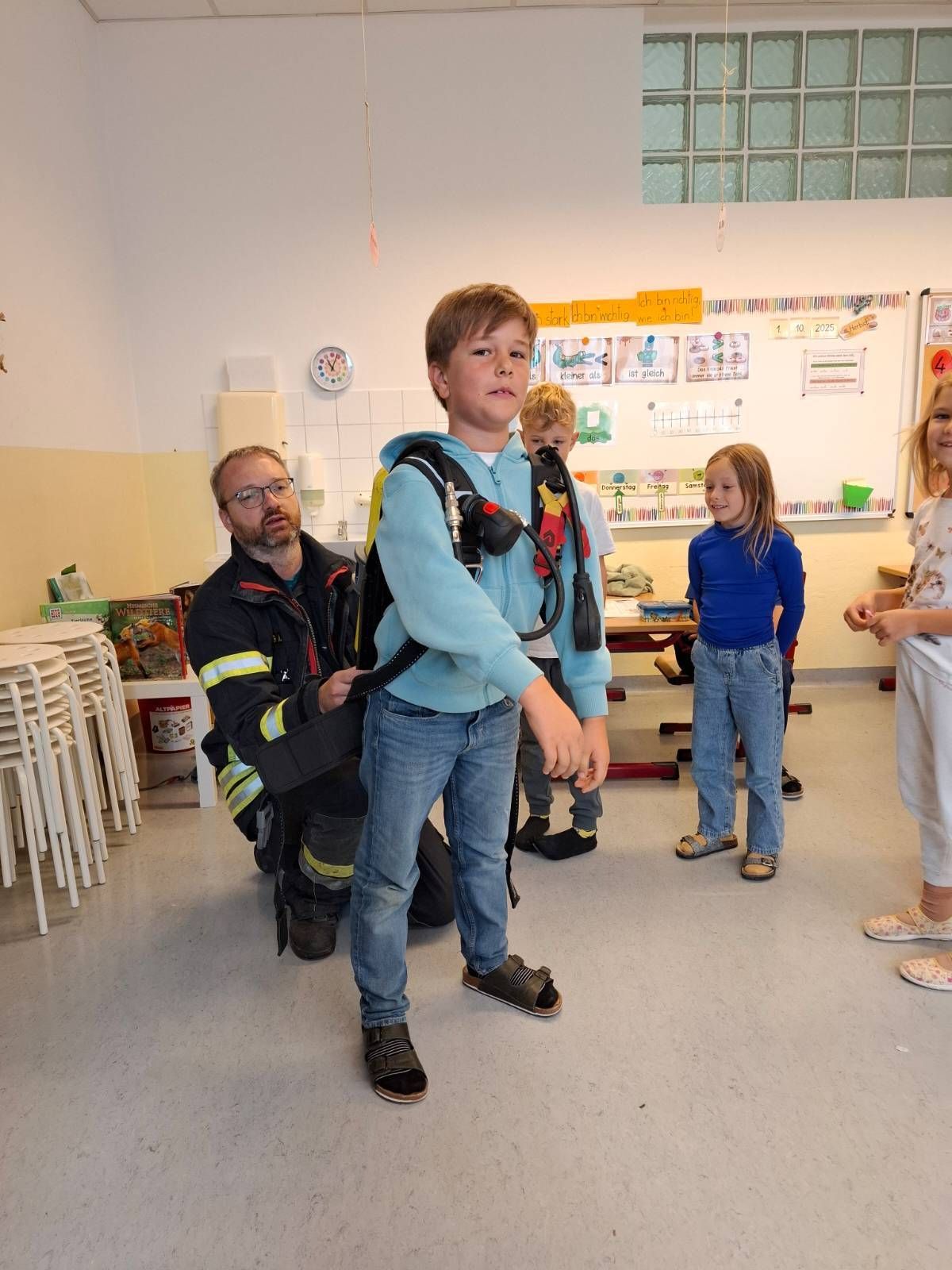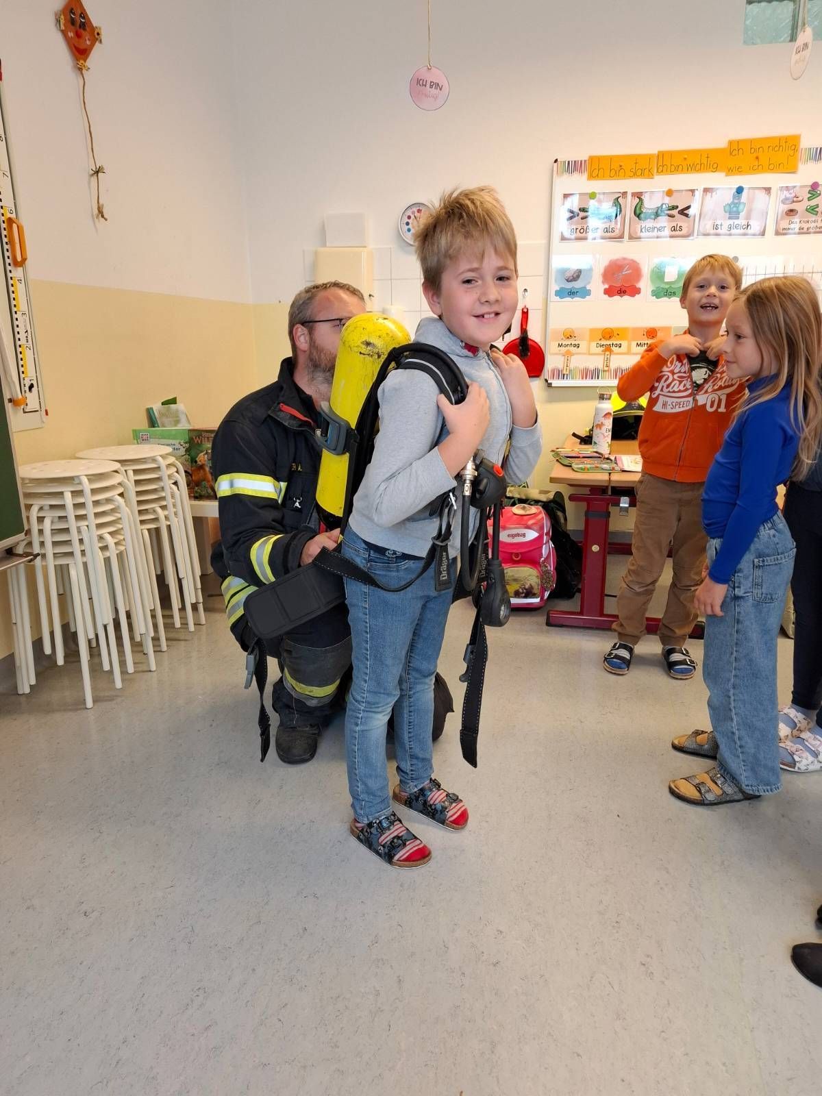 Dieser Grundsatz gilt für das ganze Leben - nicht nur für die Malreihen in der Schule: Was man gut und "automatisch" können möchte, muss man so oft wie möglich üben. Und um in brenzligen Situationen das Richtige zu tun, ist es umso wichtiger, sich mit der Materie zu beschäftigen. Die FF Reisenberg mit ihrem Kommandanten Wolfgang Rieck sieht das genauso, deshalb haben wir gleich in den ersten Wochen des neuen Schj. mit einer "Räumübung" begonnen: so schnell wie möglich die Schule zu verlassen, wenn dies notwendig ist. Und das hat auch ganz toll geklappt! Sogar die Kinder im Turnsaal verließen, zwar widerwillig, jedoch notwendigerweise, das Schulgebäude - und wir waren spitze in der Zeit. Das Wetter hat es nicht so gut mit uns gemeint - auch kein Problem, denn in diesen Fällen flüchten wir uns in den Pfarrhof, wo wir auf die Freigabe der Schulräumlichkeiten durch die FF warten. Hernach durften alle die Atemschutzgeräte genauer unter die Lupe nehmen, auch gab es noch genügend Zeit für Fragen und Anliegen der Kinder in den warmen Klassenräumen. Vielen Dank an unsere ehrenamtlichen Mitarbeiter/innen bei der FF Reisenberg - für ihre Zeit und ihre ständige Verfügbarkeit, wenn es um die Sicherheit der Reisenberger/innen geht!