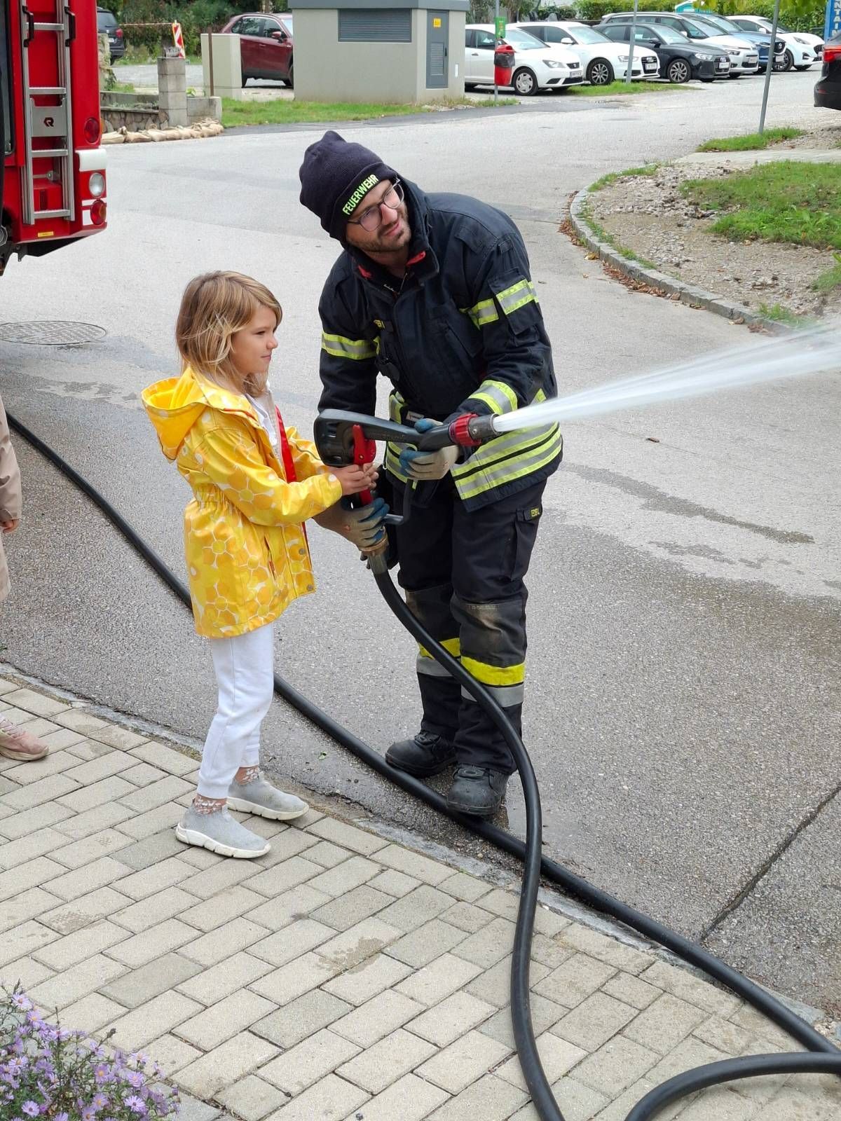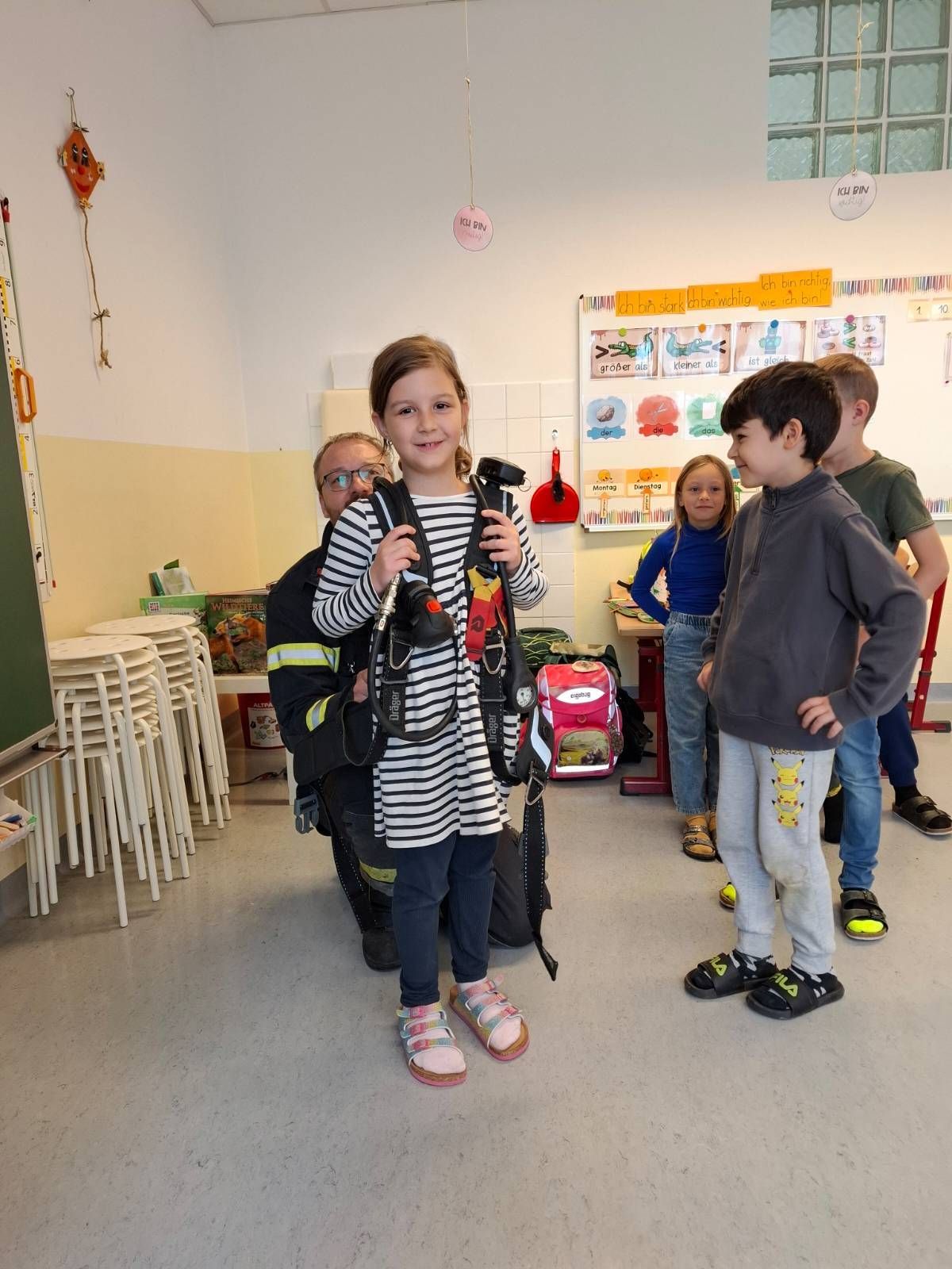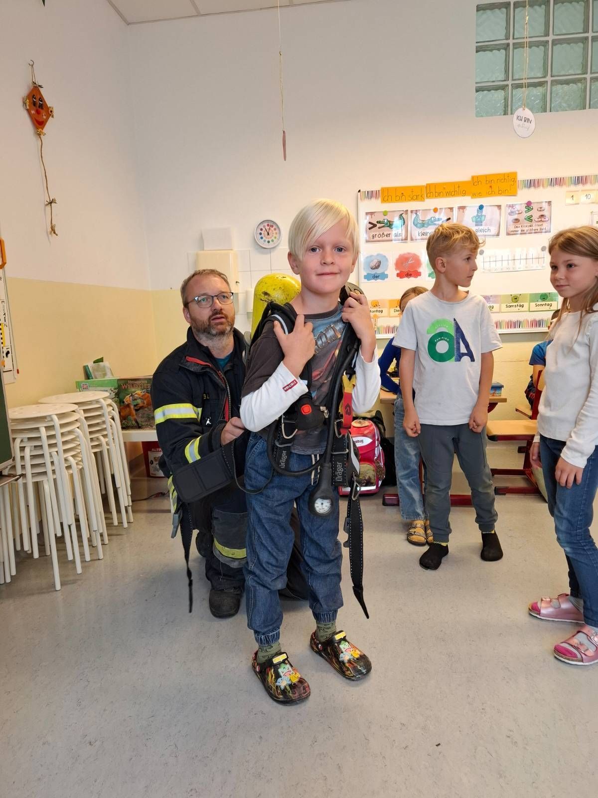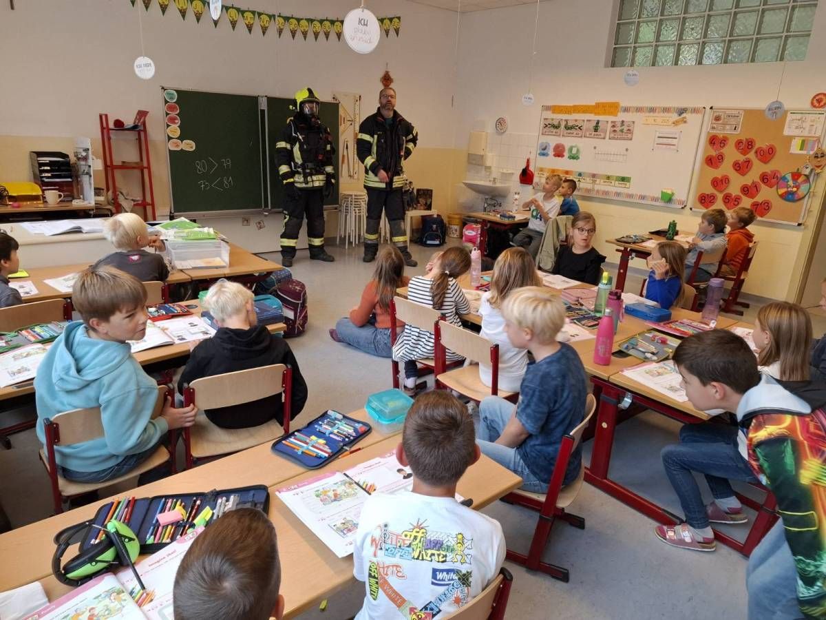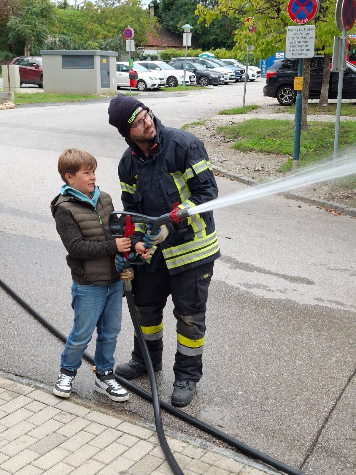 Dieser Grundsatz gilt für das ganze Leben - nicht nur für die Malreihen in der Schule: Was man gut und "automatisch" können möchte, muss man so oft wie möglich üben. Und um in brenzligen Situationen das Richtige zu tun, ist es umso wichtiger, sich mit der Materie zu beschäftigen. Die FF Reisenberg mit ihrem Kommandanten Wolfgang Rieck sieht das genauso, deshalb haben wir gleich in den ersten Wochen des neuen Schj. mit einer "Räumübung" begonnen: so schnell wie möglich die Schule zu verlassen, wenn dies notwendig ist. Und das hat auch ganz toll geklappt! Sogar die Kinder im Turnsaal verließen, zwar widerwillig, jedoch notwendigerweise, das Schulgebäude - und wir waren spitze in der Zeit. Das Wetter hat es nicht so gut mit uns gemeint - auch kein Problem, denn in diesen Fällen flüchten wir uns in den Pfarrhof, wo wir auf die Freigabe der Schulräumlichkeiten durch die FF warten. Hernach durften alle die Atemschutzgeräte genauer unter die Lupe nehmen, auch gab es noch genügend Zeit für Fragen und Anliegen der Kinder in den warmen Klassenräumen. Vielen Dank an unsere ehrenamtlichen Mitarbeiter/innen bei der FF Reisenberg - für ihre Zeit und ihre ständige Verfügbarkeit, wenn es um die Sicherheit der Reisenberger/innen geht!