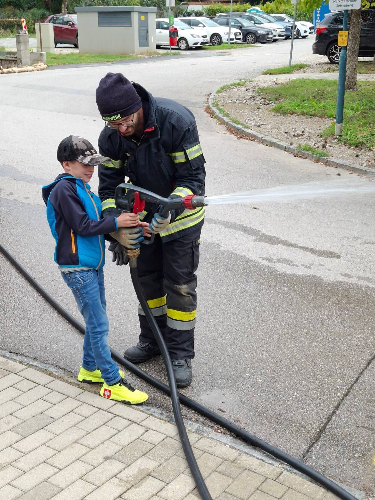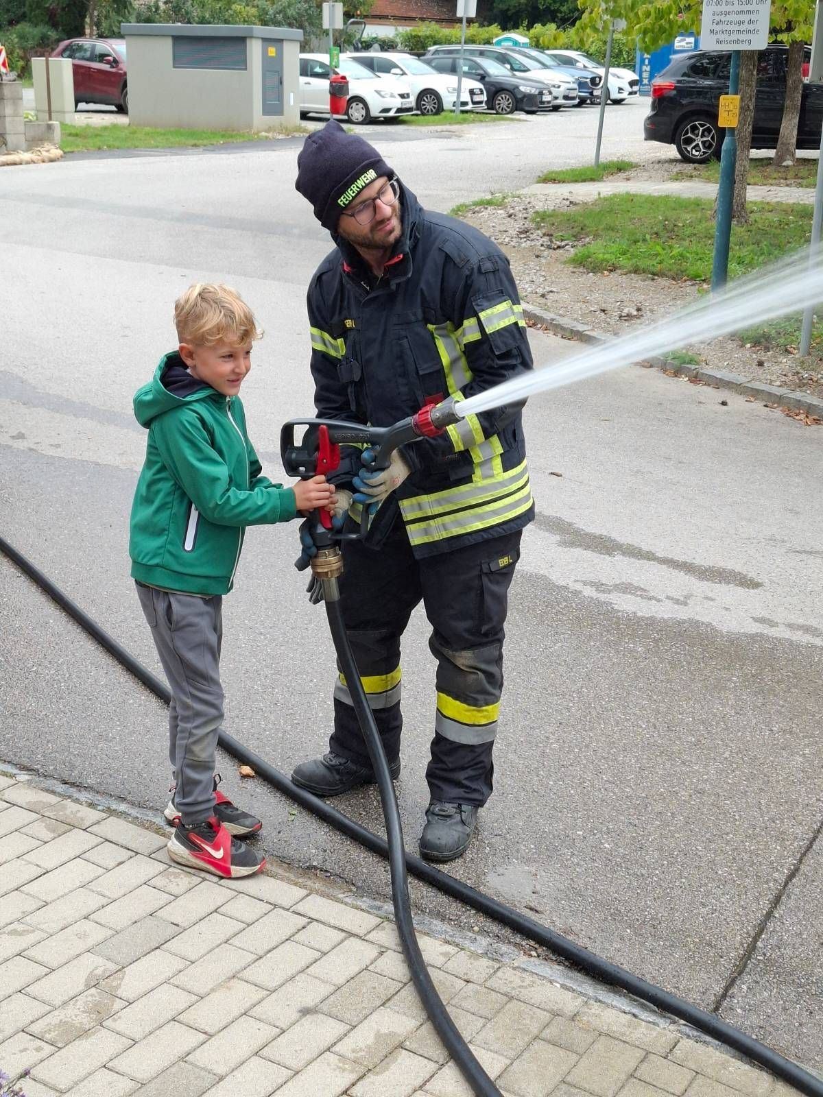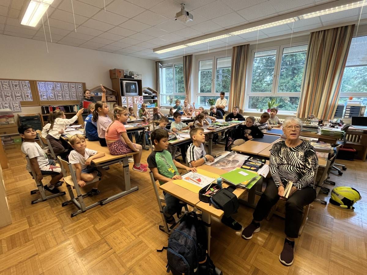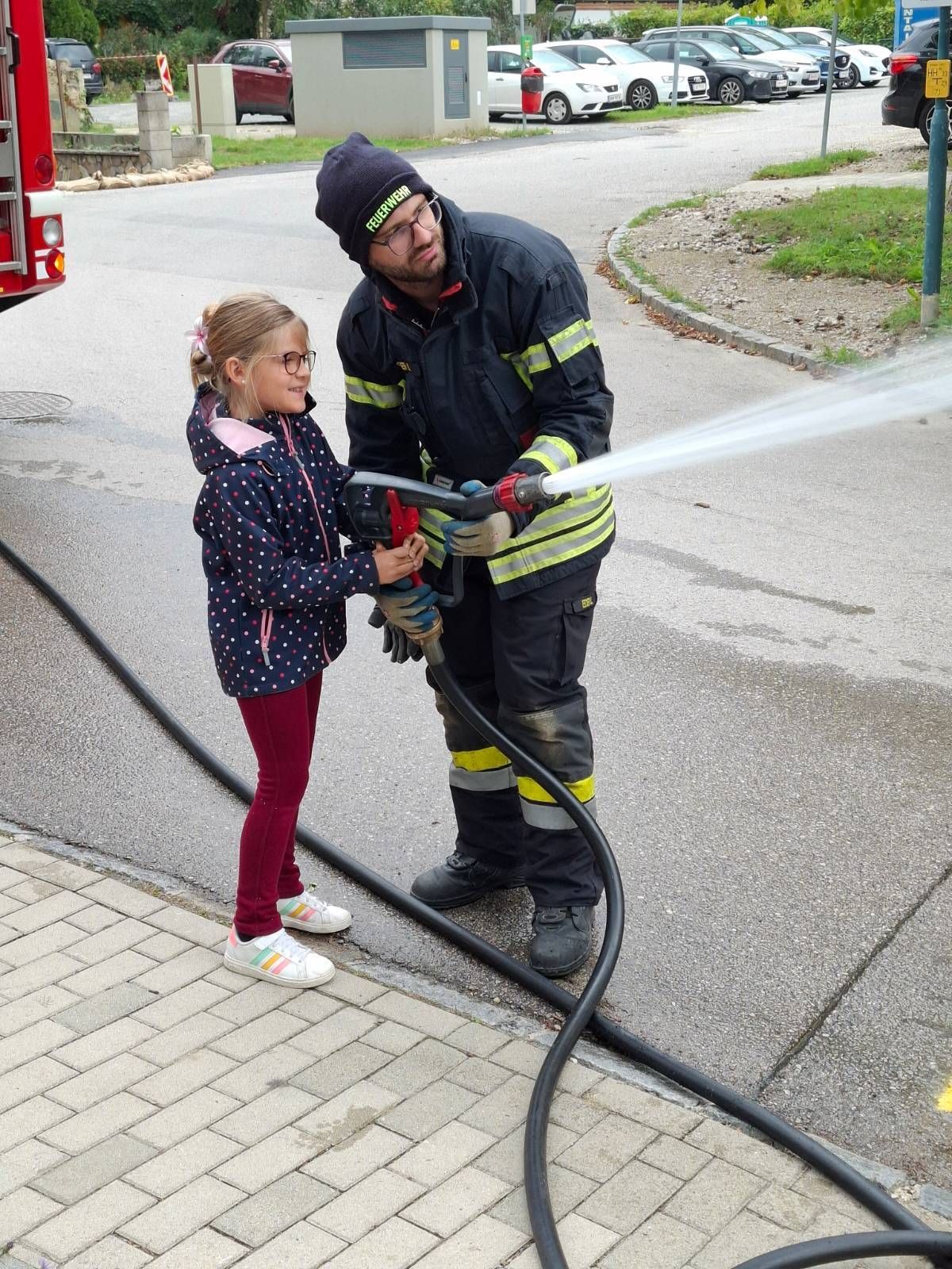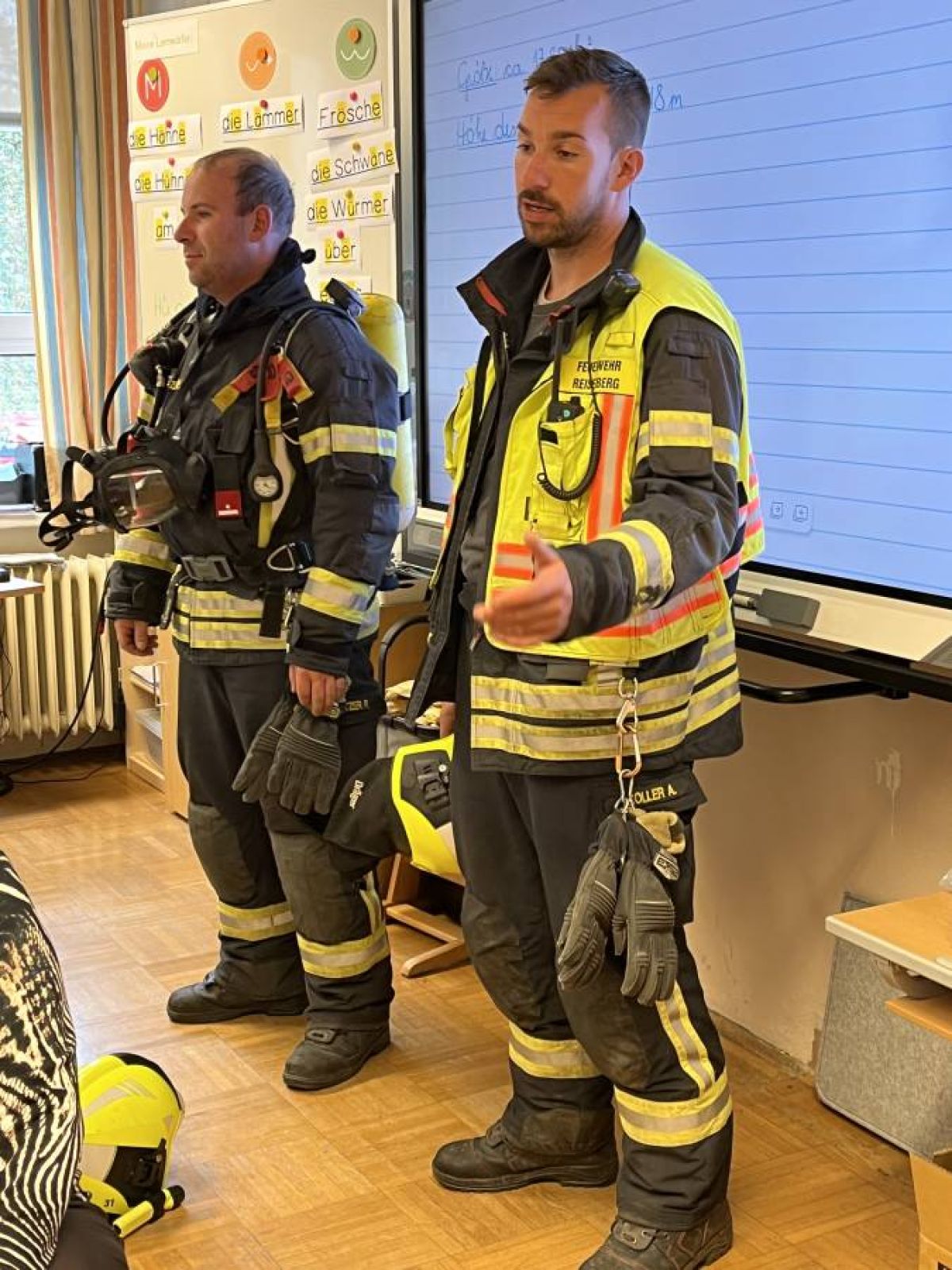 Dieser Grundsatz gilt für das ganze Leben - nicht nur für die Malreihen in der Schule: Was man gut und "automatisch" können möchte, muss man so oft wie möglich üben. Und um in brenzligen Situationen das Richtige zu tun, ist es umso wichtiger, sich mit der Materie zu beschäftigen. Die FF Reisenberg mit ihrem Kommandanten Wolfgang Rieck sieht das genauso, deshalb haben wir gleich in den ersten Wochen des neuen Schj. mit einer "Räumübung" begonnen: so schnell wie möglich die Schule zu verlassen, wenn dies notwendig ist. Und das hat auch ganz toll geklappt! Sogar die Kinder im Turnsaal verließen, zwar widerwillig, jedoch notwendigerweise, das Schulgebäude - und wir waren spitze in der Zeit. Das Wetter hat es nicht so gut mit uns gemeint - auch kein Problem, denn in diesen Fällen flüchten wir uns in den Pfarrhof, wo wir auf die Freigabe der Schulräumlichkeiten durch die FF warten. Hernach durften alle die Atemschutzgeräte genauer unter die Lupe nehmen, auch gab es noch genügend Zeit für Fragen und Anliegen der Kinder in den warmen Klassenräumen. Vielen Dank an unsere ehrenamtlichen Mitarbeiter/innen bei der FF Reisenberg - für ihre Zeit und ihre ständige Verfügbarkeit, wenn es um die Sicherheit der Reisenberger/innen geht!