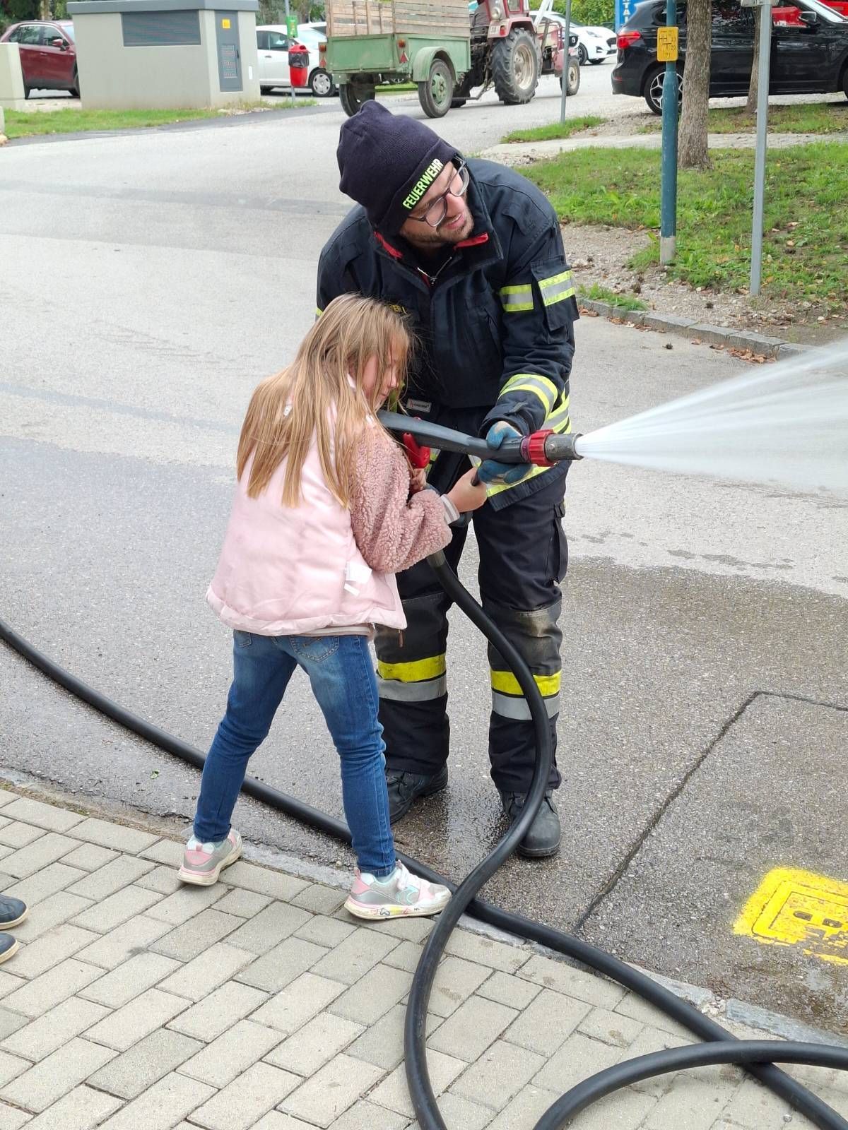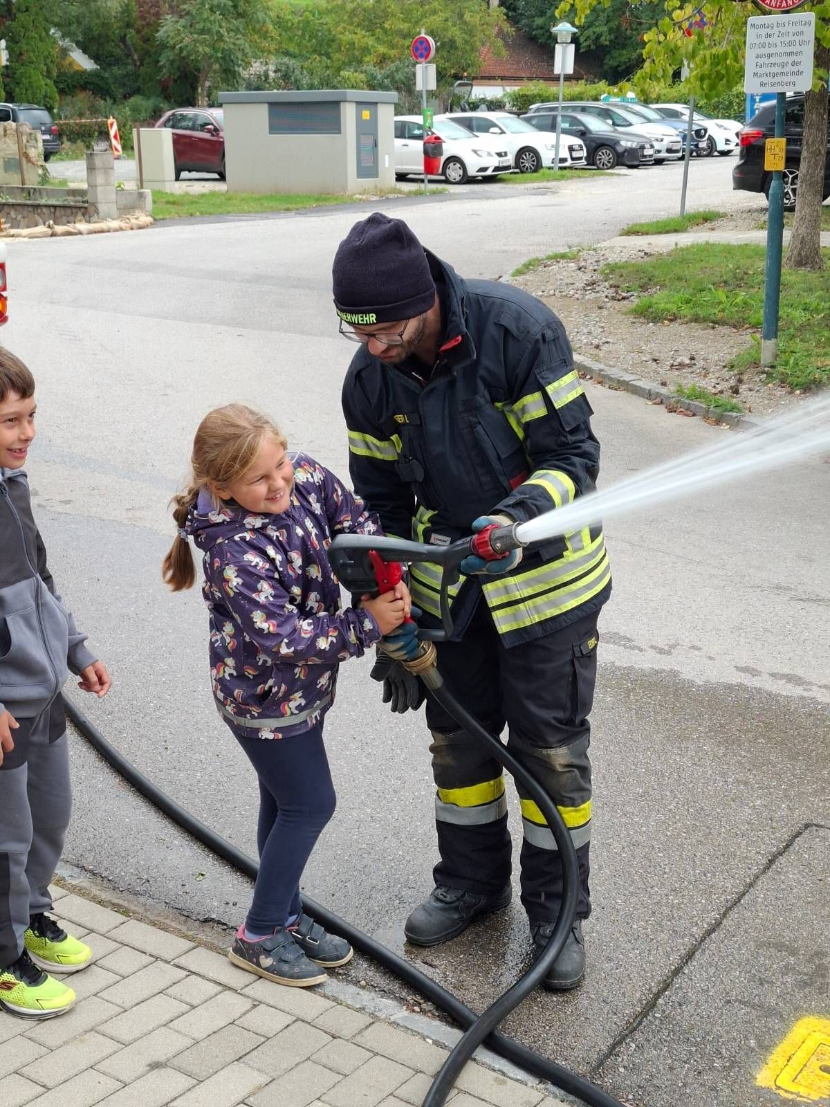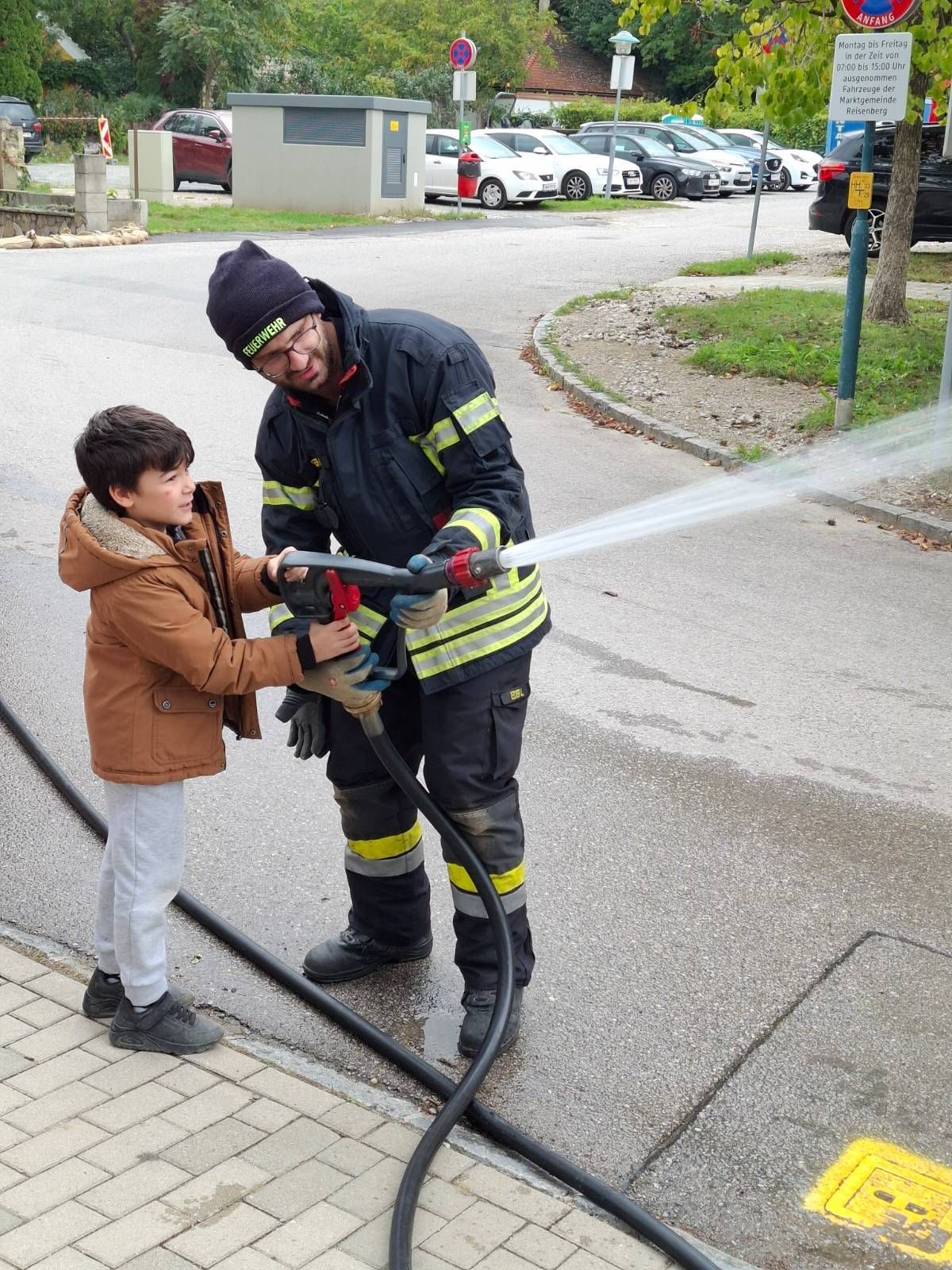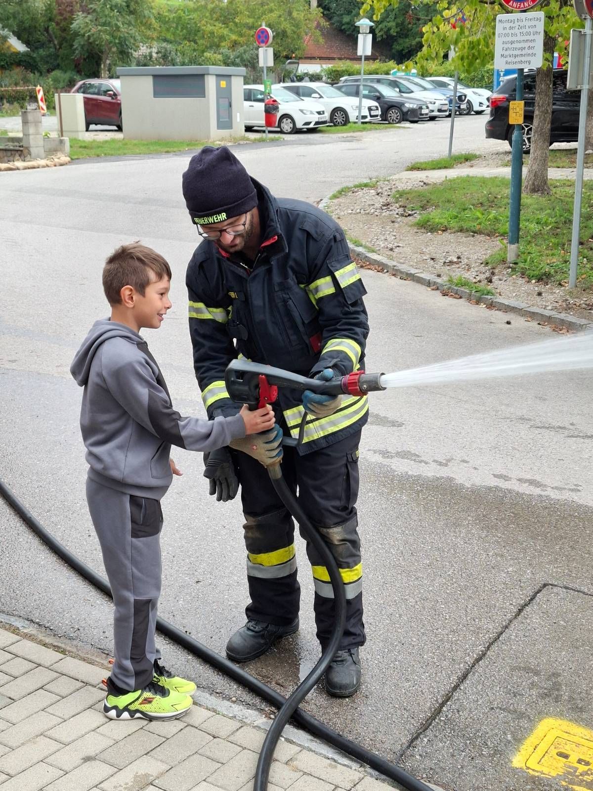 Dieser Grundsatz gilt für das ganze Leben - nicht nur für die Malreihen in der Schule: Was man gut und "automatisch" können möchte, muss man so oft wie möglich üben. Und um in brenzligen Situationen das Richtige zu tun, ist es umso wichtiger, sich mit der Materie zu beschäftigen. Die FF Reisenberg mit ihrem Kommandanten Wolfgang Rieck sieht das genauso, deshalb haben wir gleich in den ersten Wochen des neuen Schj. mit einer "Räumübung" begonnen: so schnell wie möglich die Schule zu verlassen, wenn dies notwendig ist. Und das hat auch ganz toll geklappt! Sogar die Kinder im Turnsaal verließen, zwar widerwillig, jedoch notwendigerweise, das Schulgebäude - und wir waren spitze in der Zeit. Das Wetter hat es nicht so gut mit uns gemeint - auch kein Problem, denn in diesen Fällen flüchten wir uns in den Pfarrhof, wo wir auf die Freigabe der Schulräumlichkeiten durch die FF warten. Hernach durften alle die Atemschutzgeräte genauer unter die Lupe nehmen, auch gab es noch genügend Zeit für Fragen und Anliegen der Kinder in den warmen Klassenräumen. Vielen Dank an unsere ehrenamtlichen Mitarbeiter/innen bei der FF Reisenberg - für ihre Zeit und ihre ständige Verfügbarkeit, wenn es um die Sicherheit der Reisenberger/innen geht!