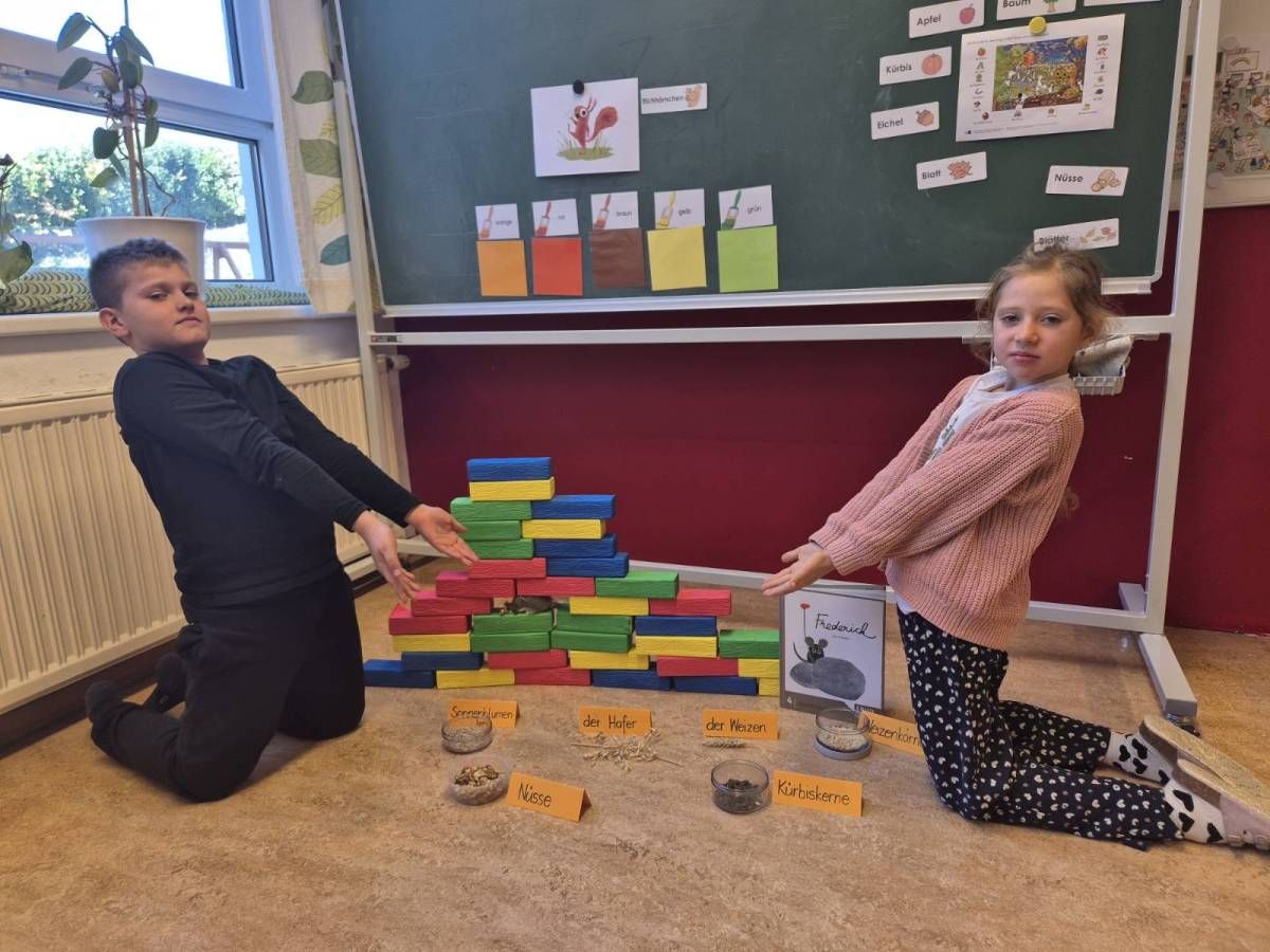 Die Geschichte von der faulen Maus Frederick, die im Sommer "faul herumliegt" und Sonnenstrahlen und schöne Augenblicke einfängt, um sie dann im düsteren Winter an die Freunde weiterzugeben, anstatt den anderen Mäusen beim Befüllen der Vorratskammern zu helfen, kennen viele unter uns. Was man aber anhand einer tollen Geschichte alles lernen kann, das können unsere Kinder im Deutschförderkurs erzählen. Und das beste Geschenk für die Lehrerin ist wohl einer der schönsten Aussprüche in der Schule: "Frau Lehrerin, die anderen Kinder sind arm - sie müssen in der Klasse lernen, wir dürfen spielen." Das wohl größte Kompliment für den Unterricht, den eine Lehrperson für ihre Arbeit bekommen kann!
