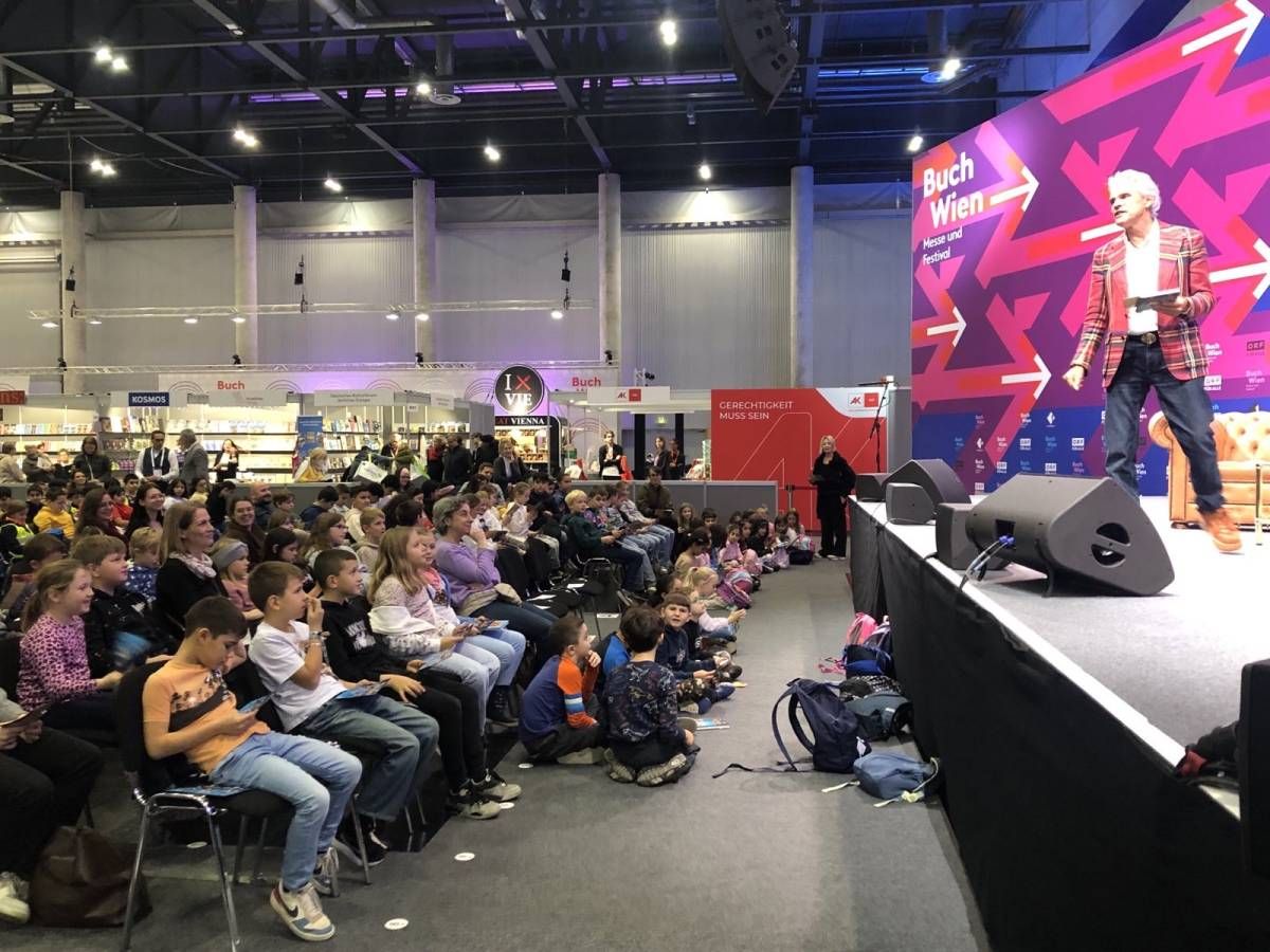 Wo kann man mehr Lust auf Bücher, Texte, das Lesen überhaupt bekommen als auf der "Buch Wien"? Genau deshalb fuhren unsere 3. und 4. Kl. nach Wien, um sich ein Bild von einer der größten Buchmessen zu machen. Und wenn man dann noch ein "Rendez-vous" mit einem der bekanntesten österreichischen Kinderbuchautoren im europäischen Raum hat, kann wirklich nichts mehr schiefgehen - tatsächlich machten unsere Kinder Bekanntschaft mit Thomas Brezina, der bereitwillig Fragen beantwortete und natürlich persönlich Autogramme austeilte. Ein Tag, der uns noch lange in Erinnerung bleiben wird ...