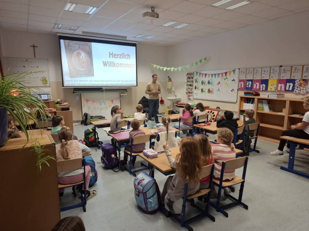 Heute erlebten wir eine ganz besondere Autorenlesung: Martin Hahn besuchte uns in der Schule und las aus seinem Buch "Theo Thede". Dieses handelt von den Träumen und daraus resultierenden Möglichkeiten der Menschen. Besonders auch unsere Einzigartigkeit wird uns hier bewusst. Vor allem aber auch der Autor Martin Hahn fesselte die Kinder und Erwachsenen mit seinen Erzählungen und Bildern zu seiner eigenen Lebensgeschichte. Aufgewachsen in Österreich, ausgewandert nach Kamerun, wo er eine Schule für Waisenkinder und Kinder aus mittellosen Familien gründete, fand er zwischendurch einen "Abstecher" zum Verfassen von Büchern. Wie gut geht es uns hier in Österreich, wo wir in warmen, freundlichen Klassen sitzen dürfen, und noch dazu kein teures Geld für gute Bildung zahlen müssen. Vielen Dank an den Elternverein, der die Kosten für diese einzigartige Lesung übernommen hat!