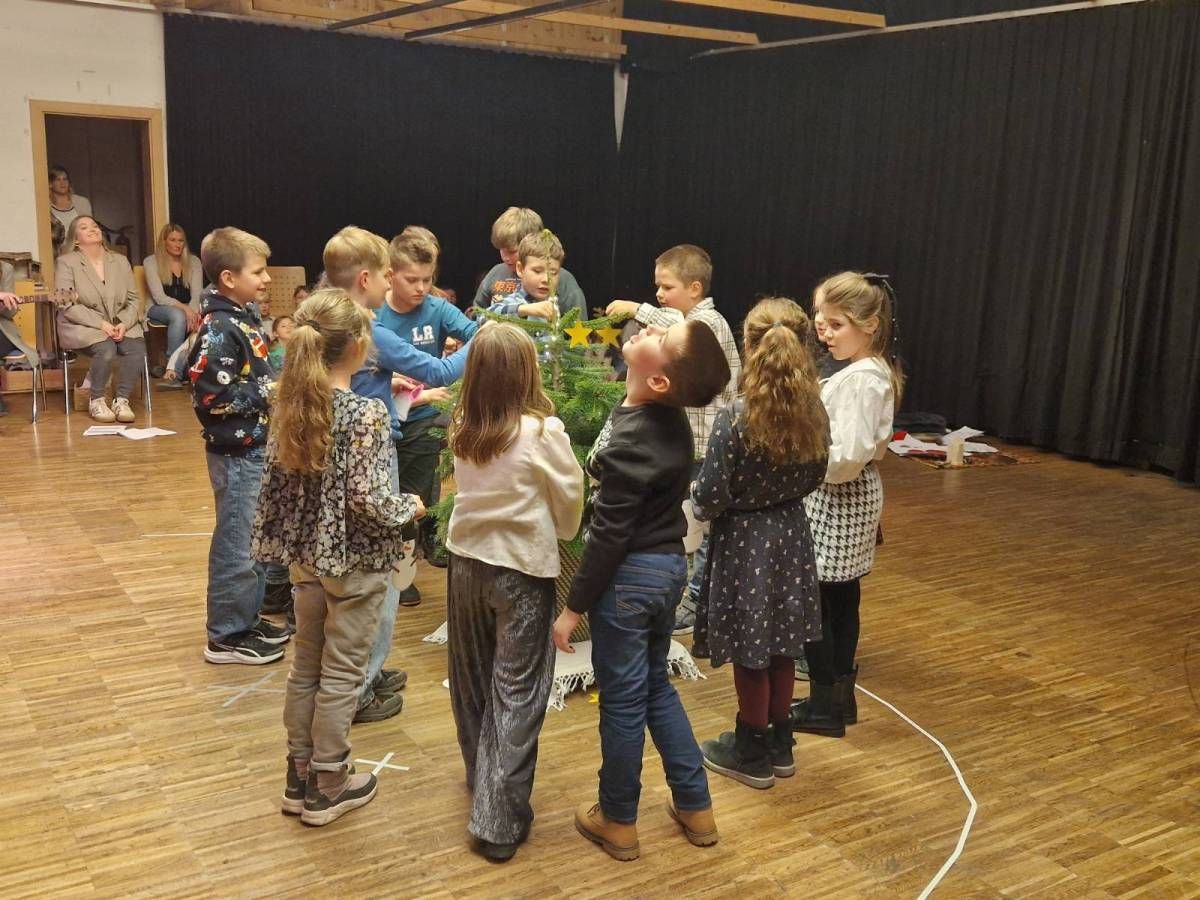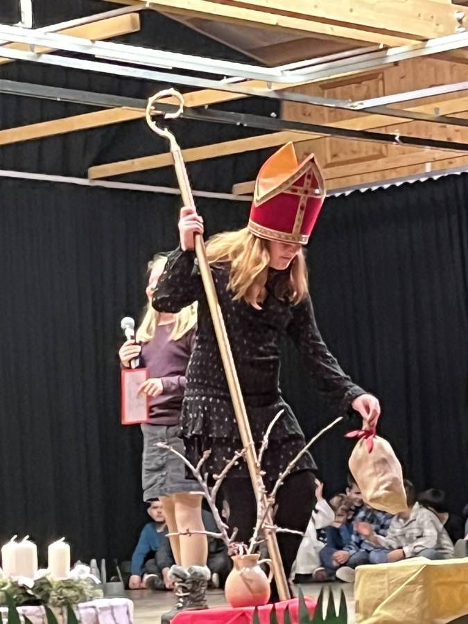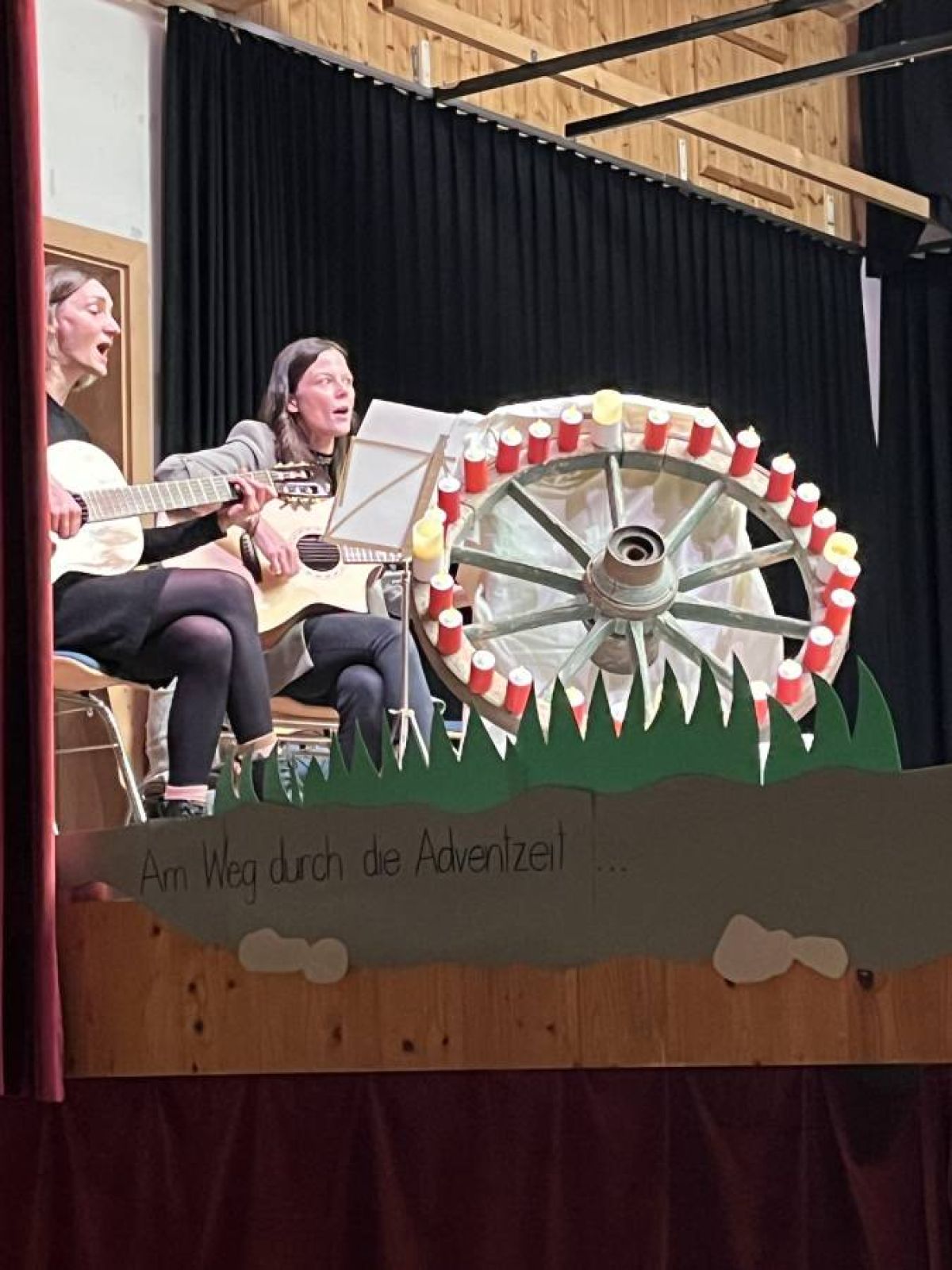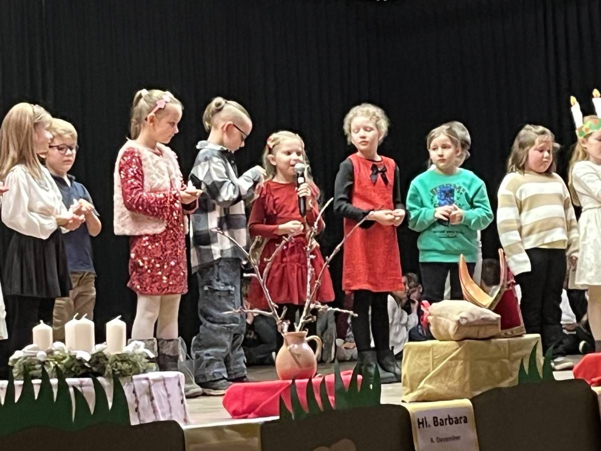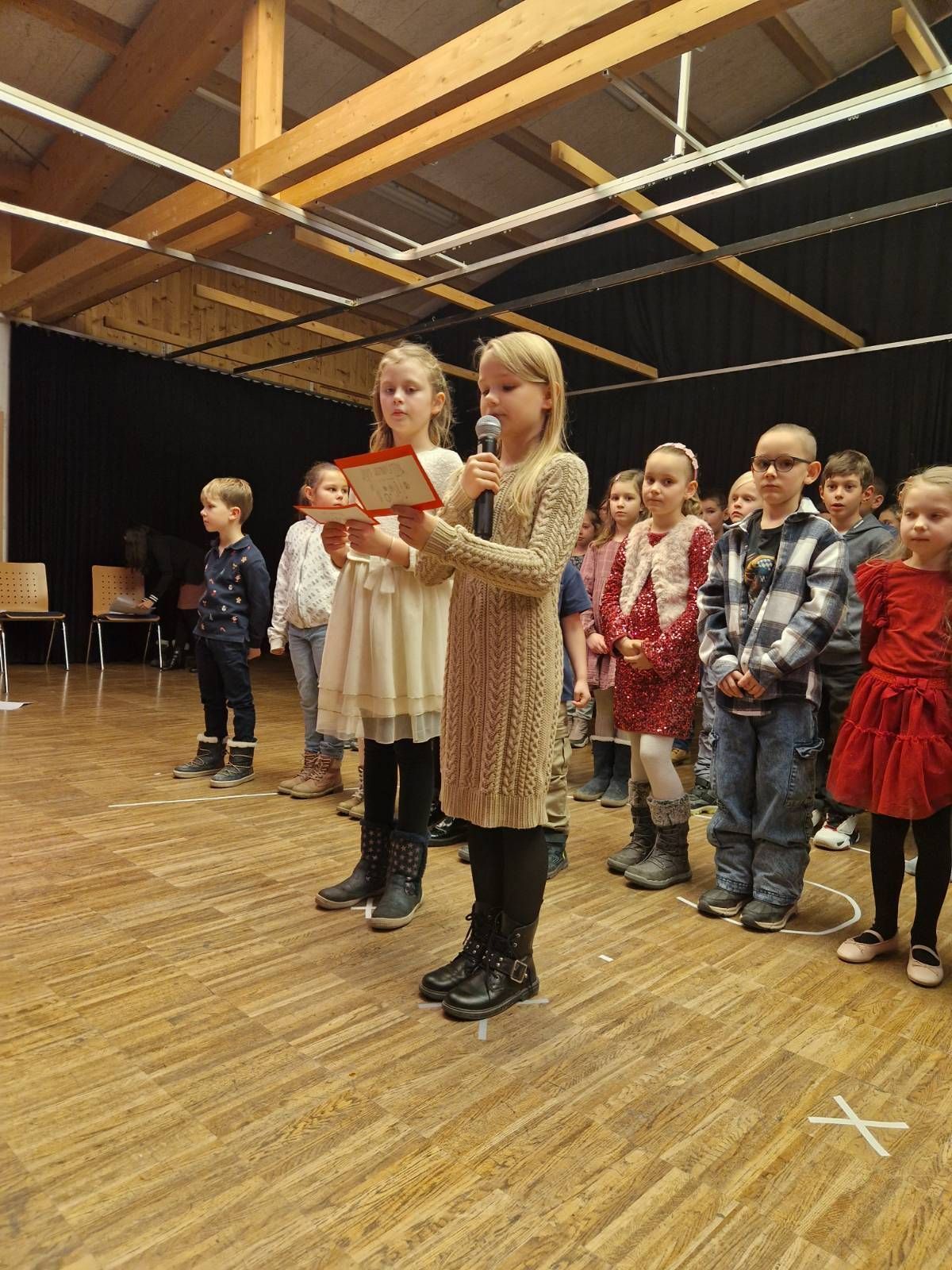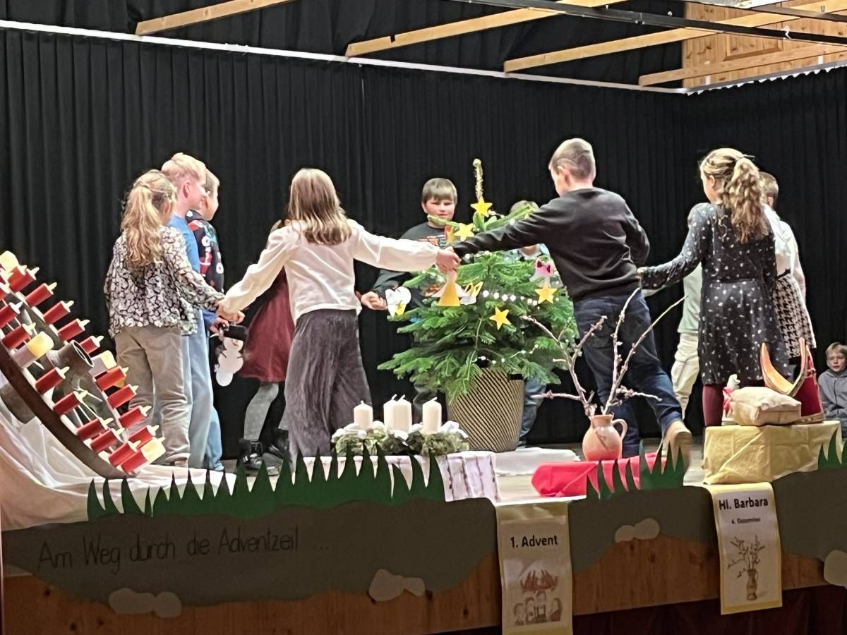 Am Do, dem 18. 12., unternahmen wir gemeinsam mit Eltern, Großeltern und vielen anderen Gästen in der Kulturhalle Reisenberg eine Reise durch die Adventzeit. Unsere Geschichte begann mit dem 1. Adventkranz, den Hr. Johann Hinrich Wichern vor fast 200 Jahren aus einem Wagenrad mit 20 roten Wochentags- und 4 weißen Sonntagskerzen in einem Kinderheim in Deutschland bastelte. Weitere Stationen waren die hl. Barbara, der hl. Nikolaus, die hl. Luzia, der Christbaum und schließlich als Schlusslicht die Krippe im Stall. Viele Lieder, Gedichte und auch ein Tanz wurden den Eltern in einer besinnlichen, feierlichen Atmosphäre geboten. Nach großem Applaus konnten sich alle am Buffet des EVs laben - an dieser Stelle ein ganz großes Dankeschön an alle, die bei den Vorbereitungen, der Durchführung und der Nachbereitung der Feier mitgewirkt haben, denn ohne die Hilfe aller kann so ein Fest nicht zustande kommen! Auch der Musikschule, die uns ebenfalls ohne zu zögern mit ihren Tönen unterstützt, gilt unser großer Dank!