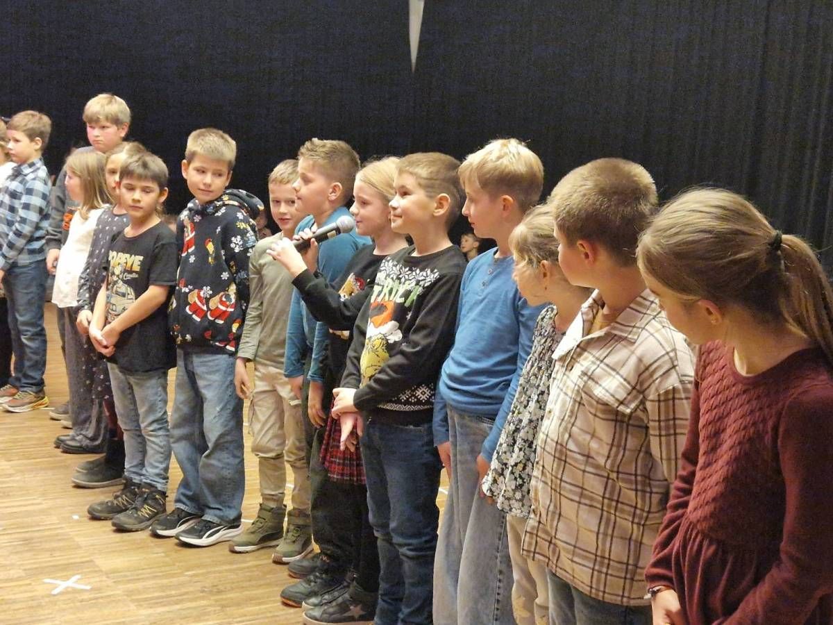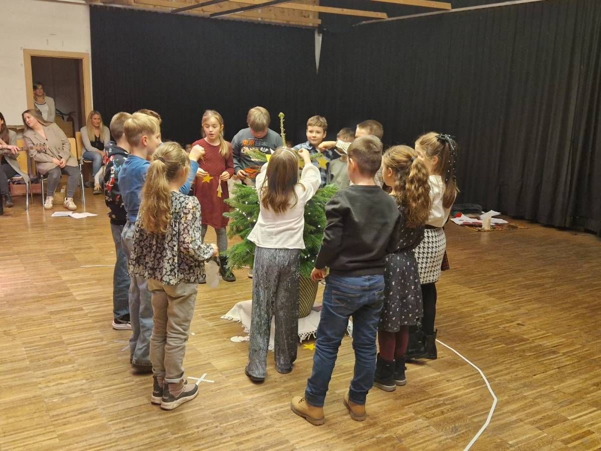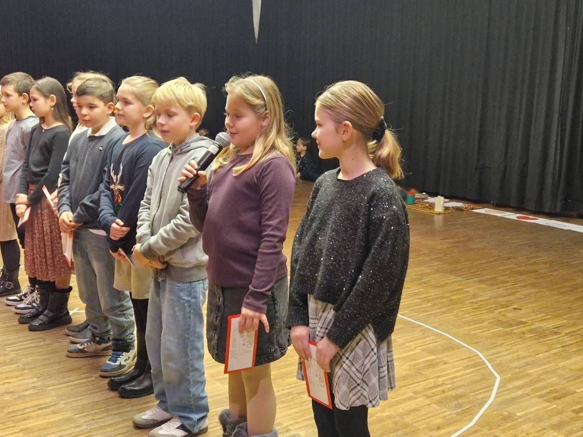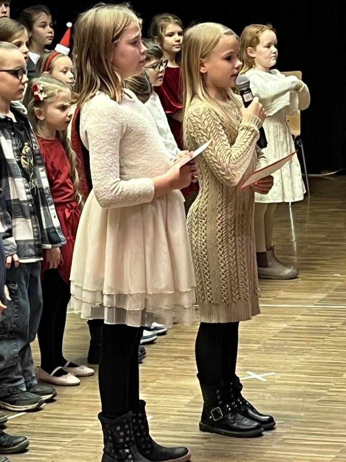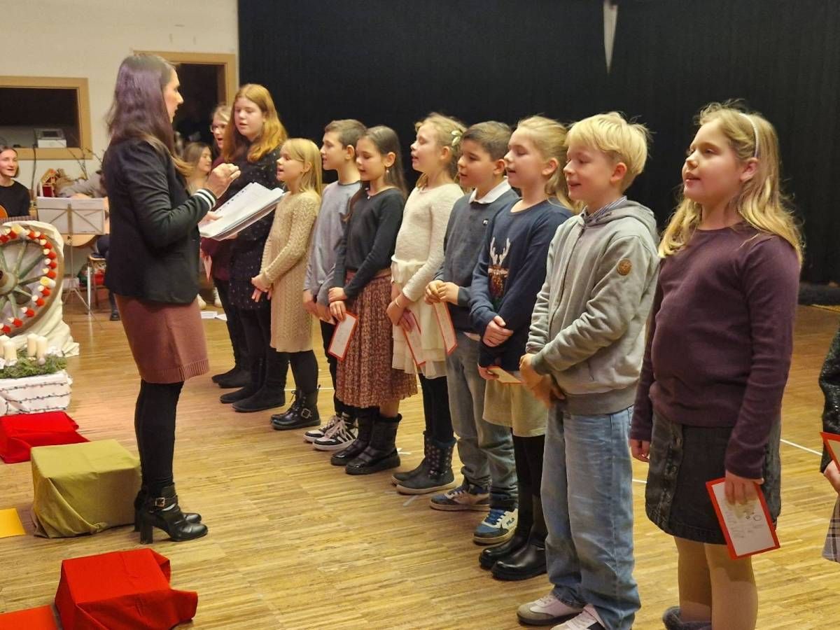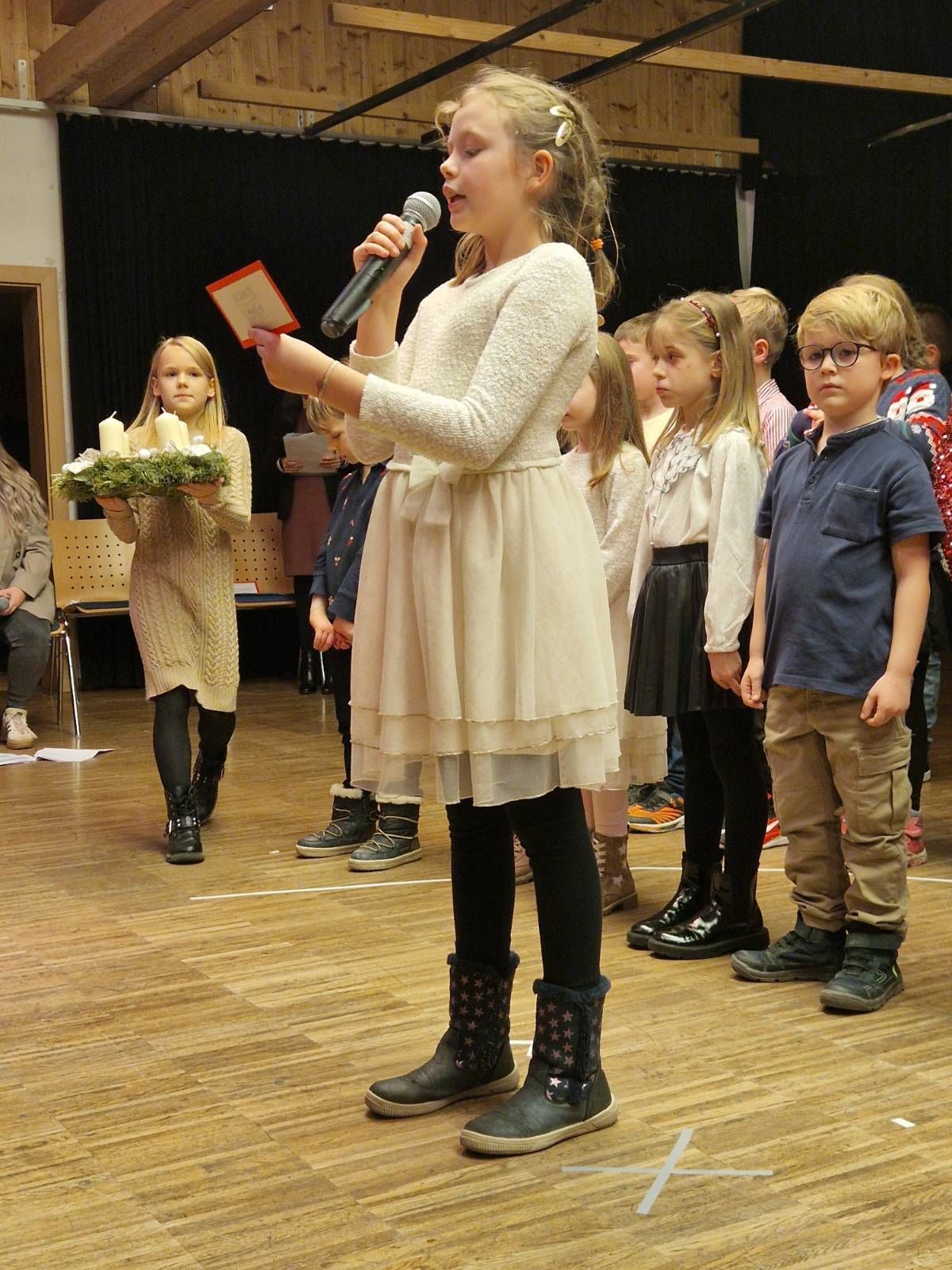 Am Do, dem 18. 12., unternahmen wir gemeinsam mit Eltern, Großeltern und vielen anderen Gästen in der Kulturhalle Reisenberg eine Reise durch die Adventzeit. Unsere Geschichte begann mit dem 1. Adventkranz, den Hr. Johann Hinrich Wichern vor fast 200 Jahren aus einem Wagenrad mit 20 roten Wochentags- und 4 weißen Sonntagskerzen in einem Kinderheim in Deutschland bastelte. Weitere Stationen waren die hl. Barbara, der hl. Nikolaus, die hl. Luzia, der Christbaum und schließlich als Schlusslicht die Krippe im Stall. Viele Lieder, Gedichte und auch ein Tanz wurden den Eltern in einer besinnlichen, feierlichen Atmosphäre geboten. Nach großem Applaus konnten sich alle am Buffet des EVs laben - an dieser Stelle ein ganz großes Dankeschön an alle, die bei den Vorbereitungen, der Durchführung und der Nachbereitung der Feier mitgewirkt haben, denn ohne die Hilfe aller kann so ein Fest nicht zustande kommen! Auch der Musikschule, die uns ebenfalls ohne zu zögern mit ihren Tönen unterstützt, gilt unser großer Dank!