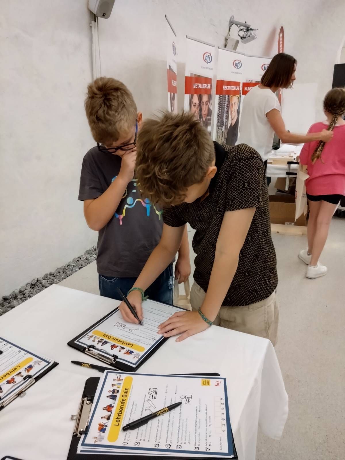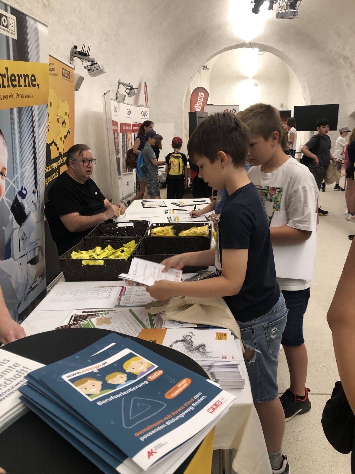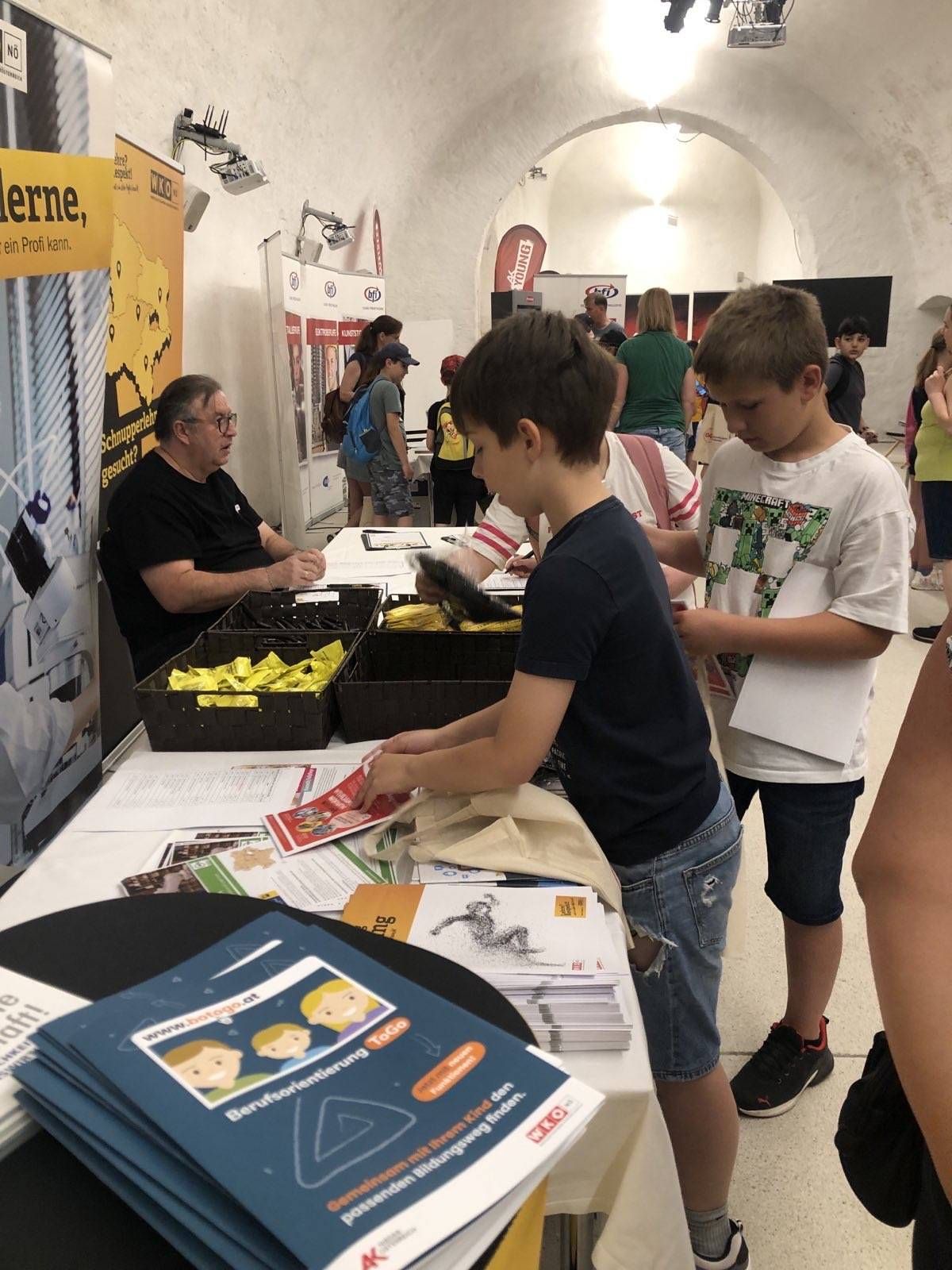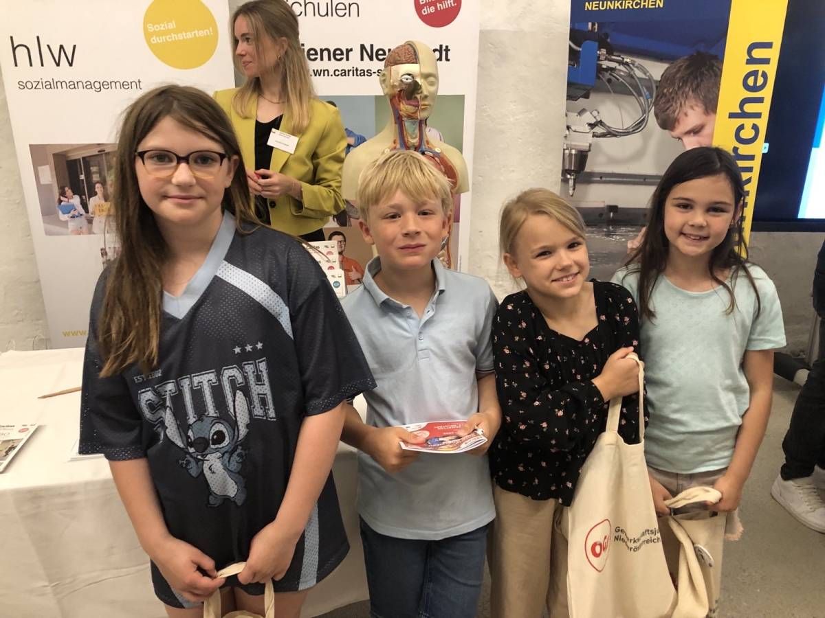 Das ist eine schwierige Frage, die uns alle früher oder später beschäftigt. Oftmals sind es die Ideen unserer Eltern, die uns in die eine oder andere Lern- oder Lehrwerkstätte bringen. Um sich selbst ein kleines Bild von Berufen machen zu können, haben wir uns in der 3. und 4. Klasse auf die Suche nach Möglichkeiten gemacht. In den Kasematten in Wr. Neustadt wurden wir fündig: Wir besuchten die Berufsinformationsmesse der jungen AK. Vieles durfte ausprobiert werden, Expertinnen und Experten erklärten uns die Tätigkeiten in den einzelnen Berufssparten. Es wurden Cocktails selbst gemixt, Buttons gedruckt, Armbänder gestaltet uvm. Ein sehr gelungener, anschaulicher und vor allem praxisbezogener Schultag!