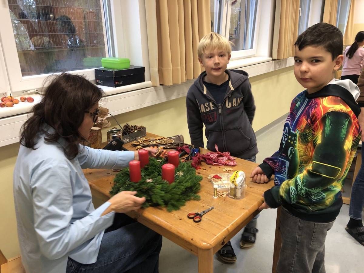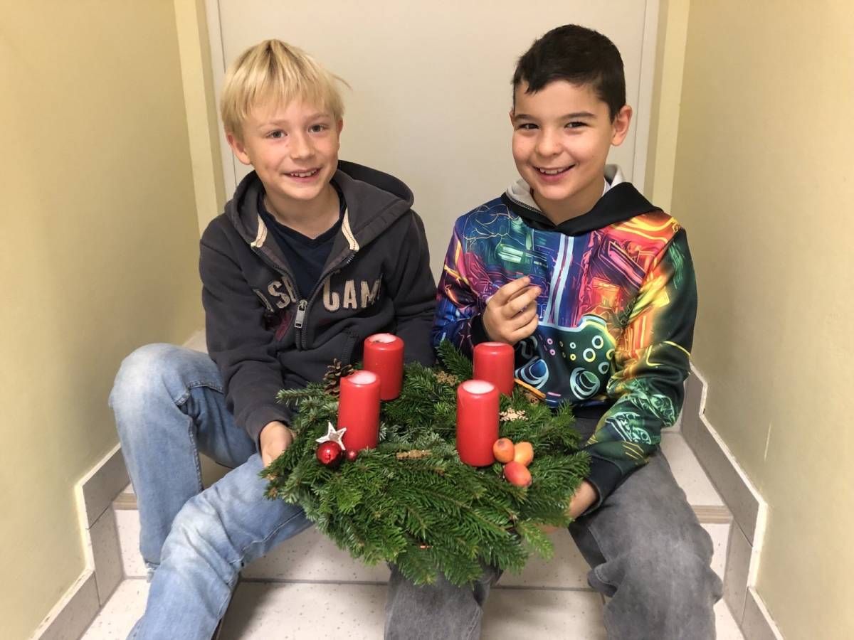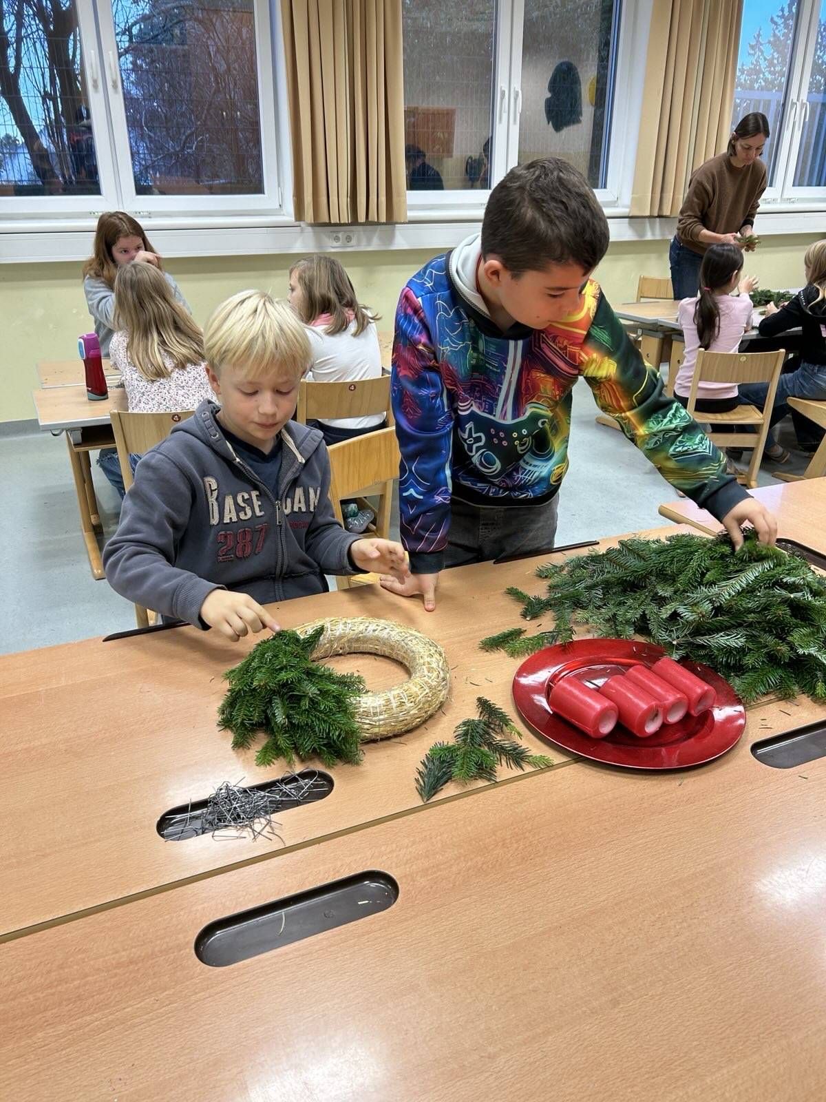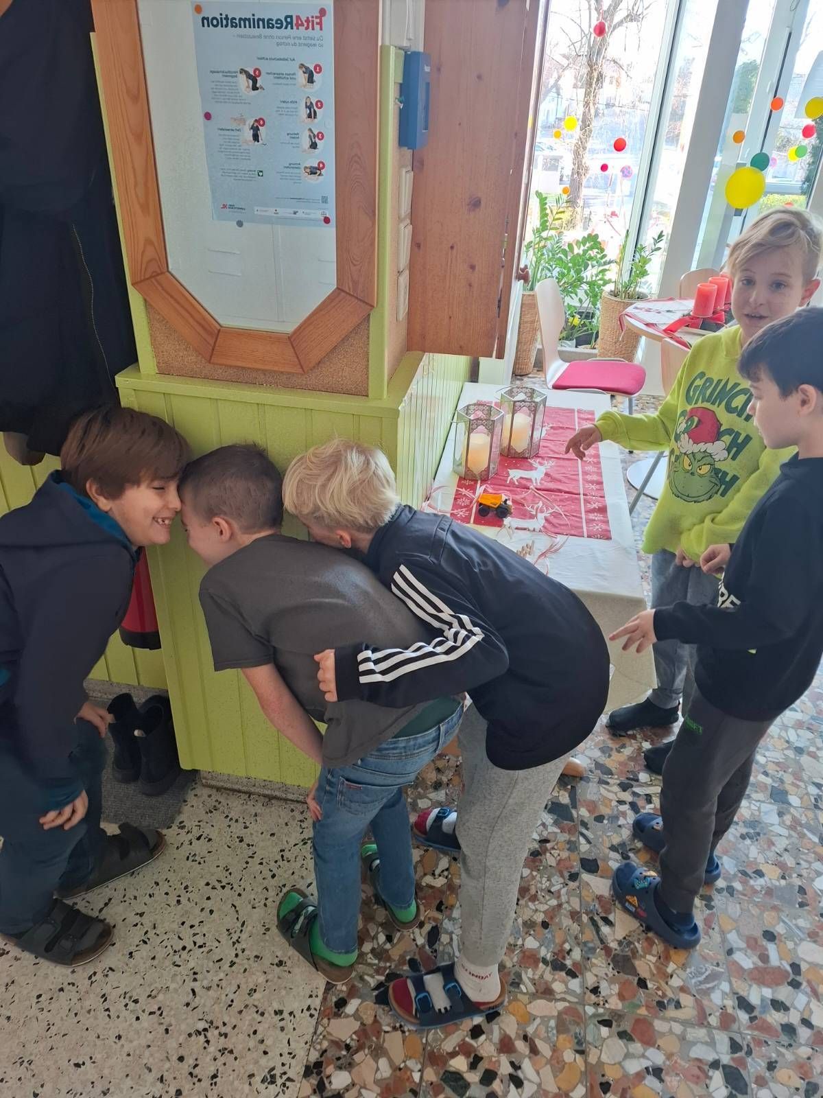 Wo soll denn das Lichtlein brennen, wenn nicht am Adventkranz bei uns in der Schule? Auch heuer konnten wir unsere Viertklässler für das Stecken der 4 Adventkränze begeistern - eine Tätigkeit, die seit mehreren Jahren lediglich den Großen bei uns in der Schule vorbehalten ist. Und die Ergebnisse können sich auf alle Fälle sehen lassen: ein Stück schöner wie das andere. Mal schauen, ob sich da nicht das eine oder andere Florist/innengenie befindet ... Gleichzeitig zog auch ein Wichtel in die Schulräumlichkeiten ein - wir hoffen, dass er am Tag mehr schläft und nicht so viel Schabernack treibt! Hältst du dein Ohr an die Holzverkleidung, kannst du ihn sogar schnarchen hören ;-)