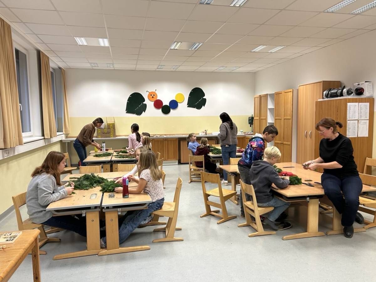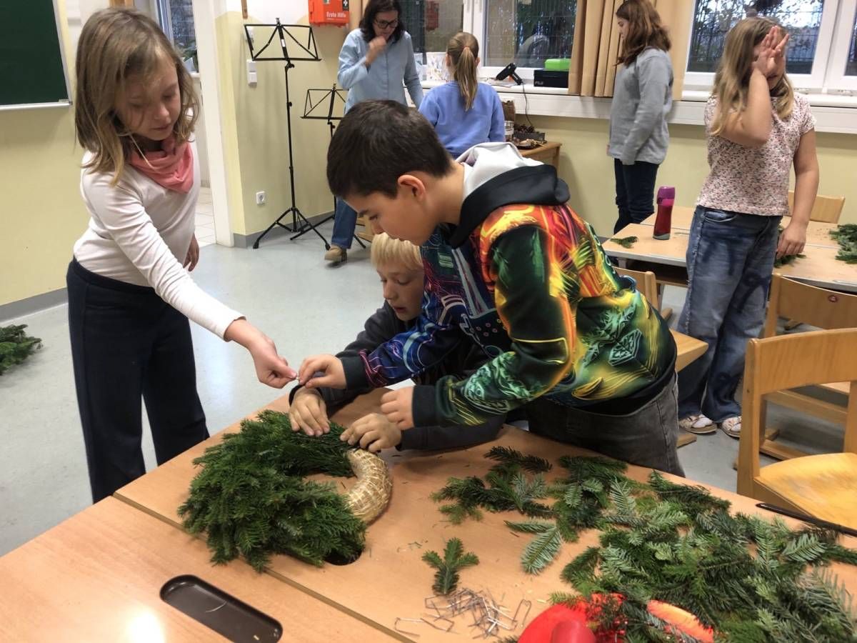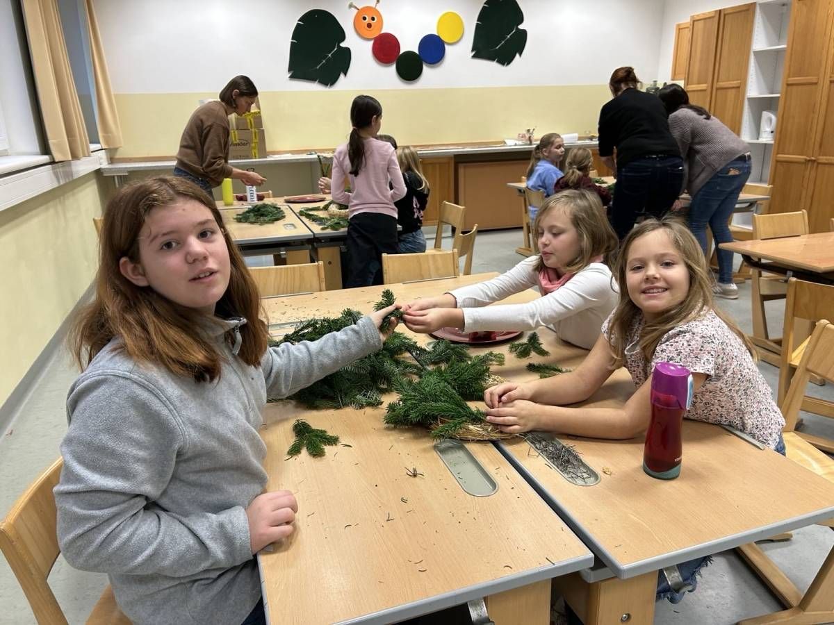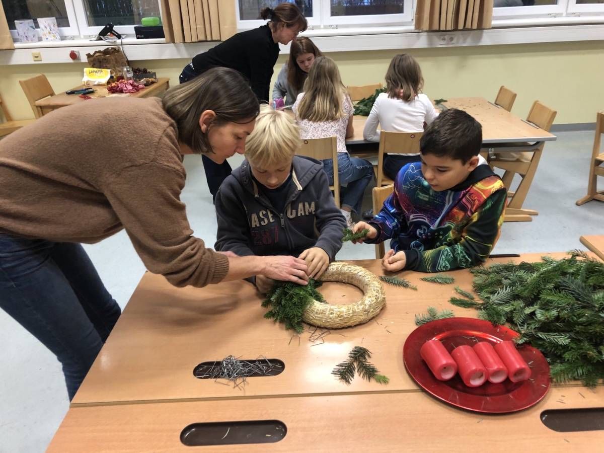 Wo soll denn das Lichtlein brennen, wenn nicht am Adventkranz bei uns in der Schule? Auch heuer konnten wir unsere Viertklässler für das Stecken der 4 Adventkränze begeistern - eine Tätigkeit, die seit mehreren Jahren lediglich den Großen bei uns in der Schule vorbehalten ist. Und die Ergebnisse können sich auf alle Fälle sehen lassen: ein Stück schöner wie das andere. Mal schauen, ob sich da nicht das eine oder andere Florist/innengenie befindet ... Gleichzeitig zog auch ein Wichtel in die Schulräumlichkeiten ein - wir hoffen, dass er am Tag mehr schläft und nicht so viel Schabernack treibt! Hältst du dein Ohr an die Holzverkleidung, kannst du ihn sogar schnarchen hören ;-)