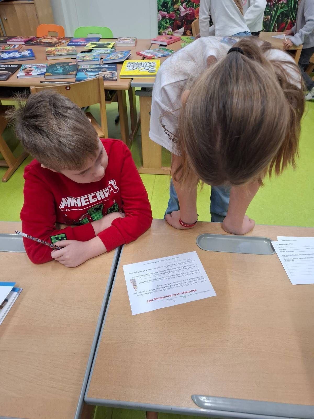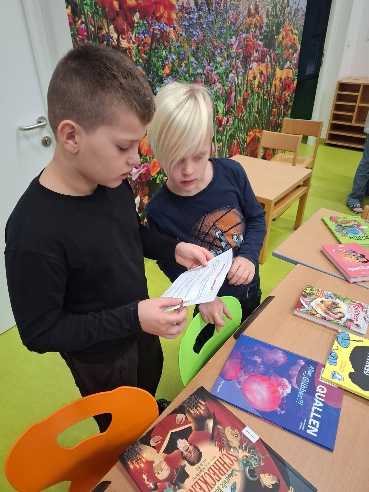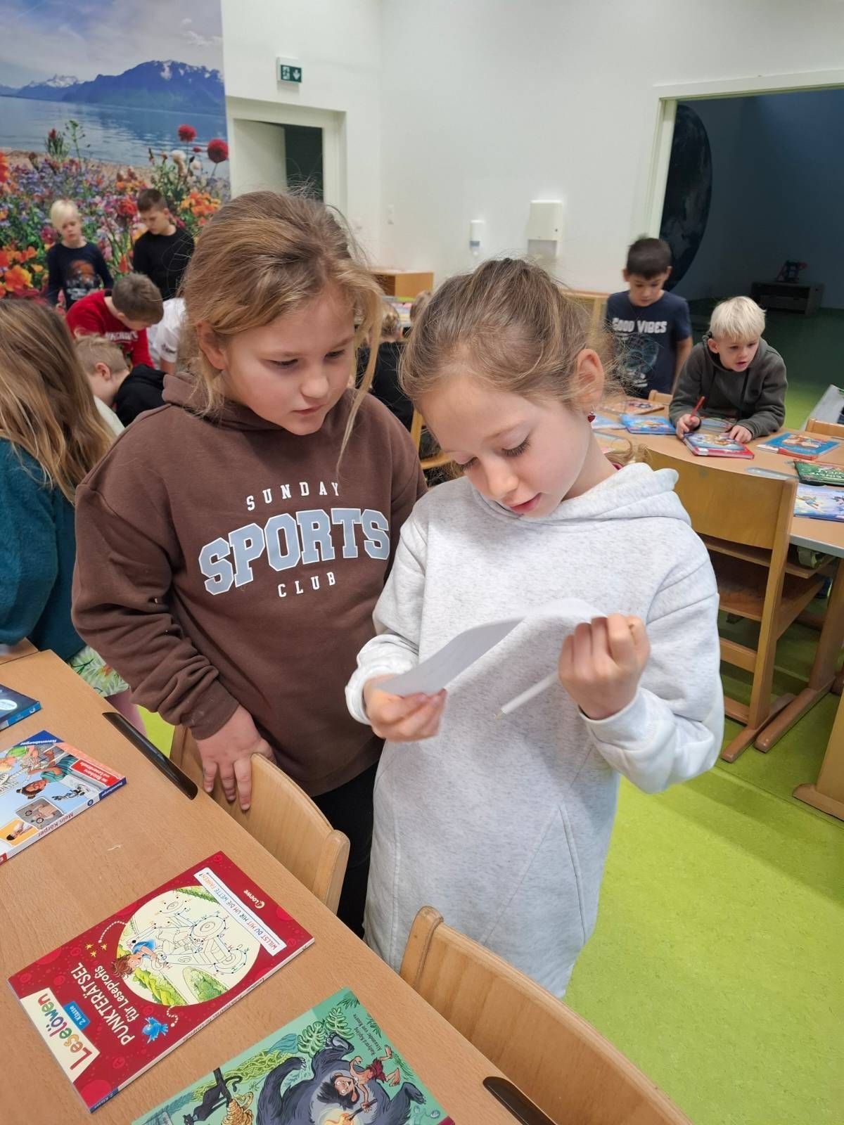 Damit das Christkind weiß, was es bei seinem Besuch zu Weihnachten mitbringen könnte, hatten wir auch heuer wieder die alljährliche Buchausstellung der Fa. Zweymüller zu Gast. Hierfür beliefert uns die Buchhandlung mit 5 gr. Kisten Büchern, die wir im Lehrerinnenkollegium dann für eine Woche an der Schule präsentieren dürfen. Zum Abschluss gab es eine kleine Leserallye, bei der die Schüler/innen im Tandem 5 Fragen beantworten mussten. Beim Weihnachtswortgottesdienst haben dann alle Kinder, die die richtigen Antworten gefunden haben, die Chance auf den Gewinn einer tollen Überraschung. Mal schauen, wer dann das große Los ziehen wird ...