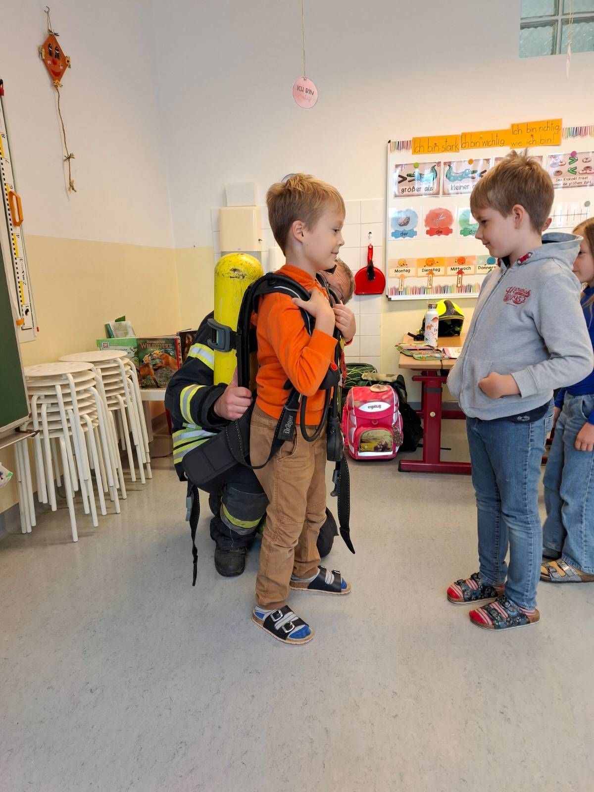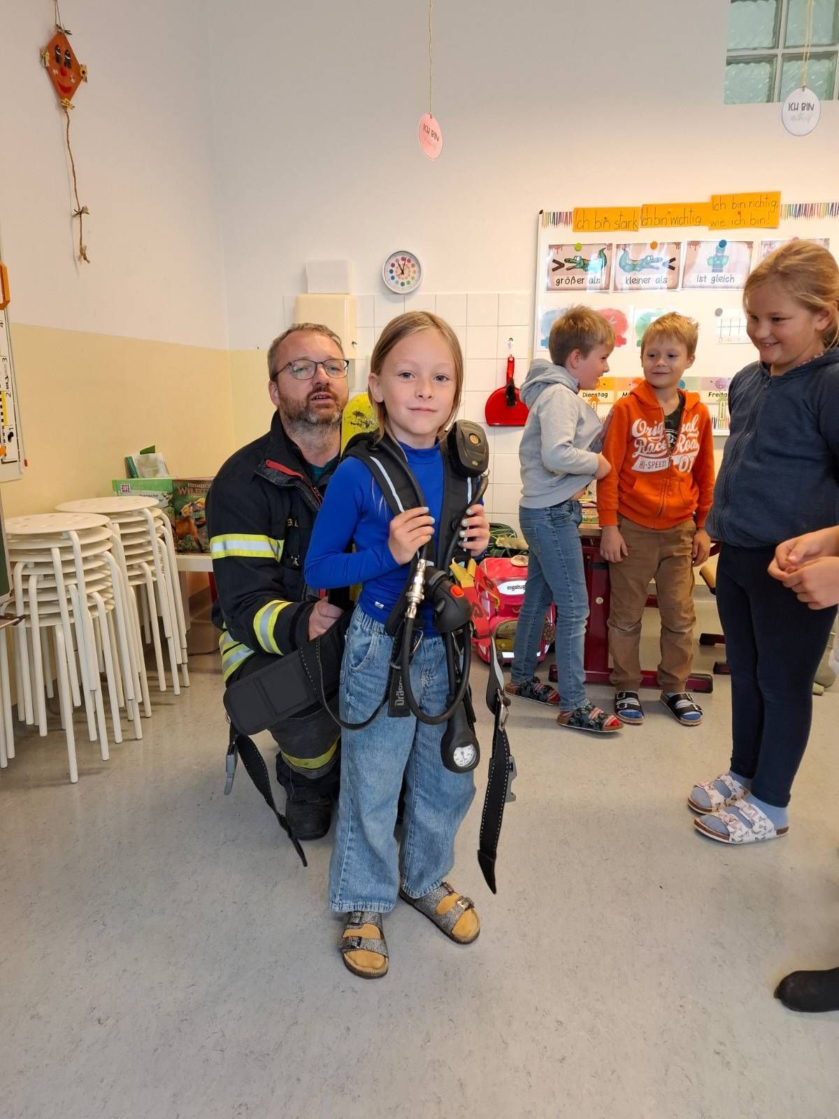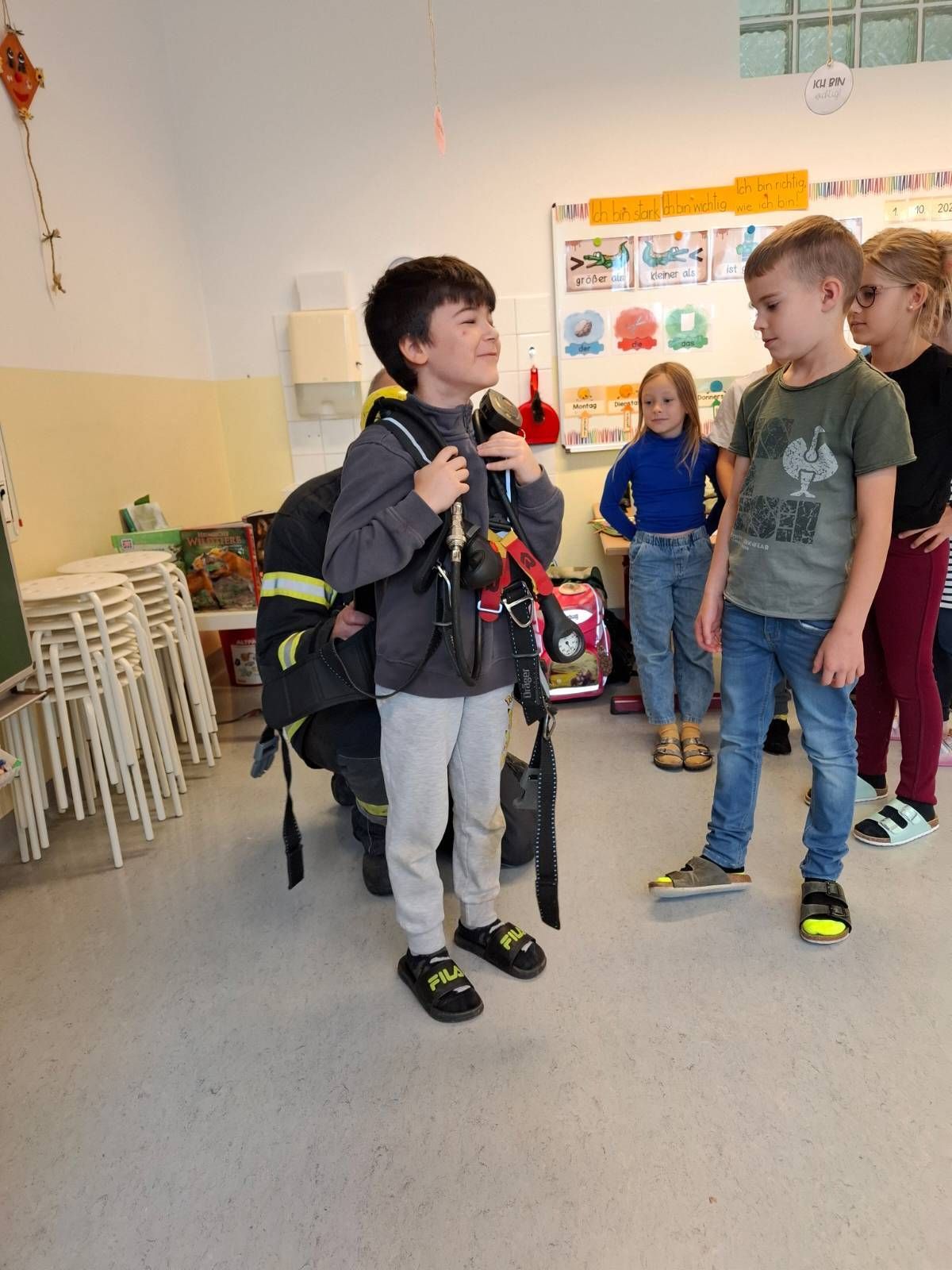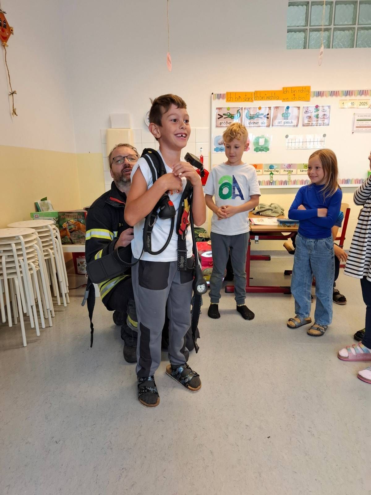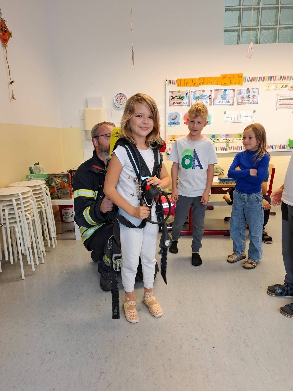 Dieser Grundsatz gilt für das ganze Leben - nicht nur für die Malreihen in der Schule: Was man gut und "automatisch" können möchte, muss man so oft wie möglich üben. Und um in brenzligen Situationen das Richtige zu tun, ist es umso wichtiger, sich mit der Materie zu beschäftigen. Die FF Reisenberg mit ihrem Kommandanten Wolfgang Rieck sieht das genauso, deshalb haben wir gleich in den ersten Wochen des neuen Schj. mit einer "Räumübung" begonnen: so schnell wie möglich die Schule zu verlassen, wenn dies notwendig ist. Und das hat auch ganz toll geklappt! Sogar die Kinder im Turnsaal verließen, zwar widerwillig, jedoch notwendigerweise, das Schulgebäude - und wir waren spitze in der Zeit. Das Wetter hat es nicht so gut mit uns gemeint - auch kein Problem, denn in diesen Fällen flüchten wir uns in den Pfarrhof, wo wir auf die Freigabe der Schulräumlichkeiten durch die FF warten. Hernach durften alle die Atemschutzgeräte genauer unter die Lupe nehmen, auch gab es noch genügend Zeit für Fragen und Anliegen der Kinder in den warmen Klassenräumen. Vielen Dank an unsere ehrenamtlichen Mitarbeiter/innen bei der FF Reisenberg - für ihre Zeit und ihre ständige Verfügbarkeit, wenn es um die Sicherheit der Reisenberger/innen geht!