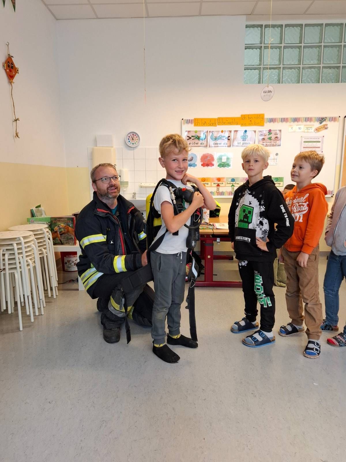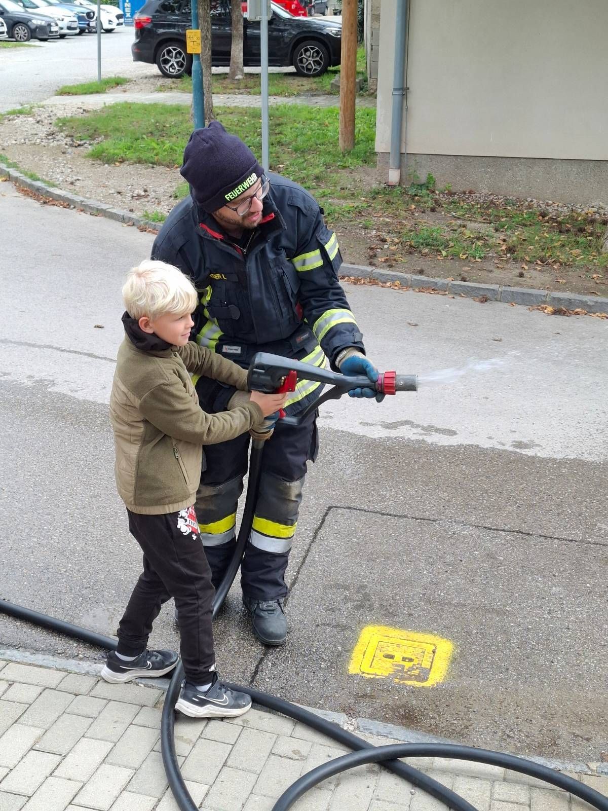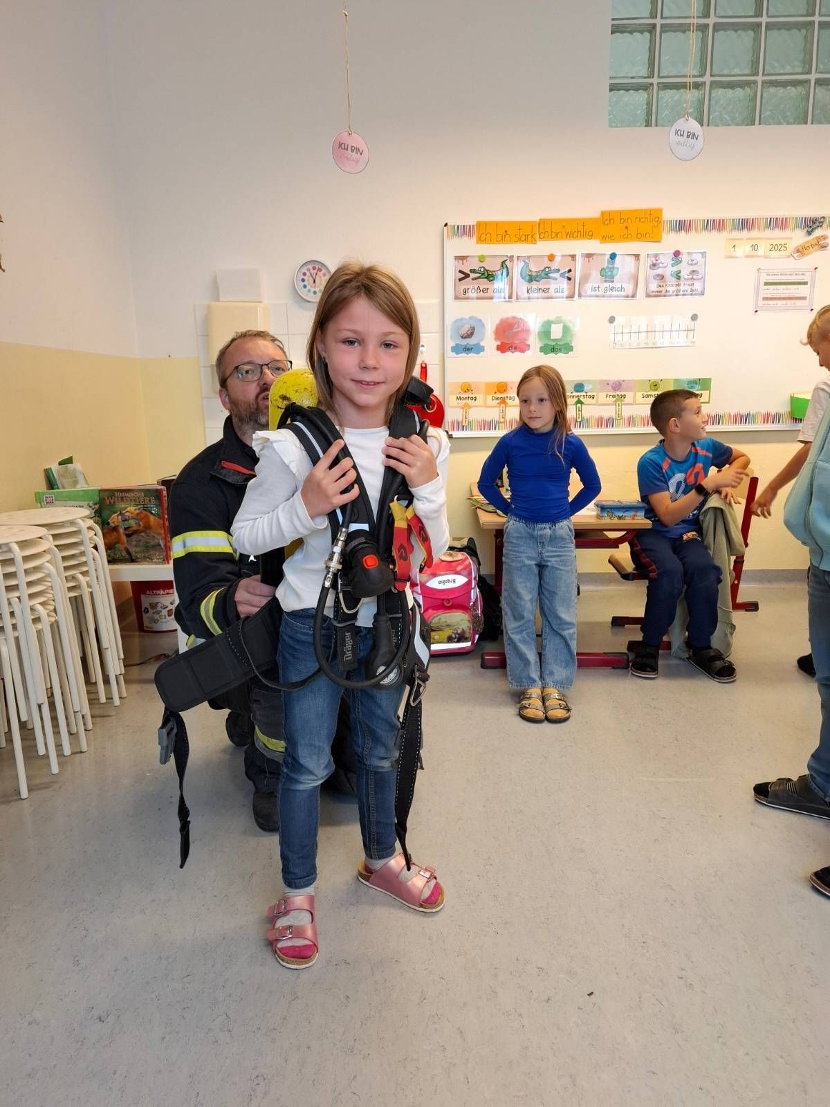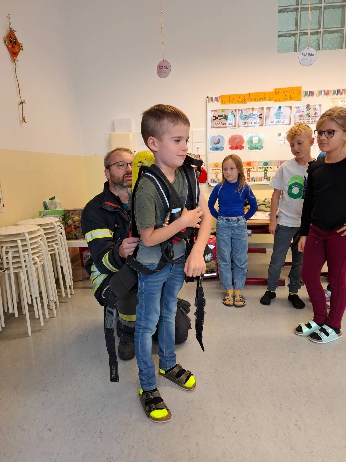 Dieser Grundsatz gilt für das ganze Leben - nicht nur für die Malreihen in der Schule: Was man gut und "automatisch" können möchte, muss man so oft wie möglich üben. Und um in brenzligen Situationen das Richtige zu tun, ist es umso wichtiger, sich mit der Materie zu beschäftigen. Die FF Reisenberg mit ihrem Kommandanten Wolfgang Rieck sieht das genauso, deshalb haben wir gleich in den ersten Wochen des neuen Schj. mit einer "Räumübung" begonnen: so schnell wie möglich die Schule zu verlassen, wenn dies notwendig ist. Und das hat auch ganz toll geklappt! Sogar die Kinder im Turnsaal verließen, zwar widerwillig, jedoch notwendigerweise, das Schulgebäude - und wir waren spitze in der Zeit. Das Wetter hat es nicht so gut mit uns gemeint - auch kein Problem, denn in diesen Fällen flüchten wir uns in den Pfarrhof, wo wir auf die Freigabe der Schulräumlichkeiten durch die FF warten. Hernach durften alle die Atemschutzgeräte genauer unter die Lupe nehmen, auch gab es noch genügend Zeit für Fragen und Anliegen der Kinder in den warmen Klassenräumen. Vielen Dank an unsere ehrenamtlichen Mitarbeiter/innen bei der FF Reisenberg - für ihre Zeit und ihre ständige Verfügbarkeit, wenn es um die Sicherheit der Reisenberger/innen geht!