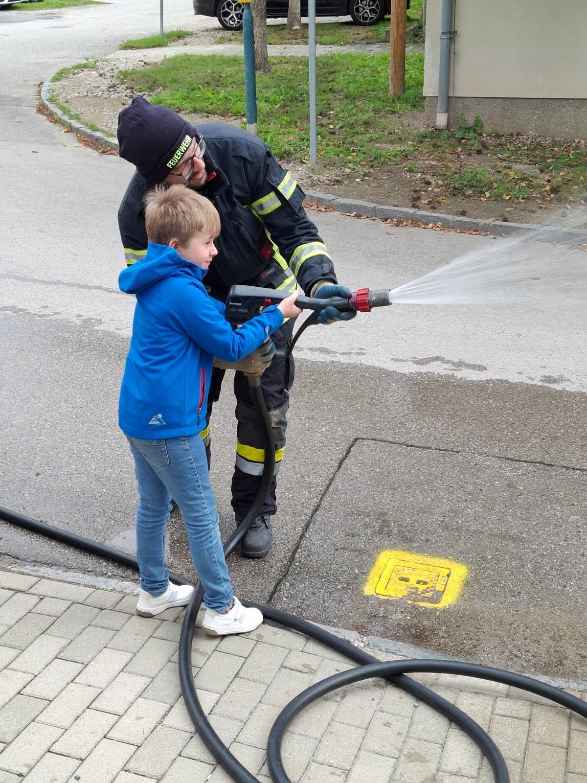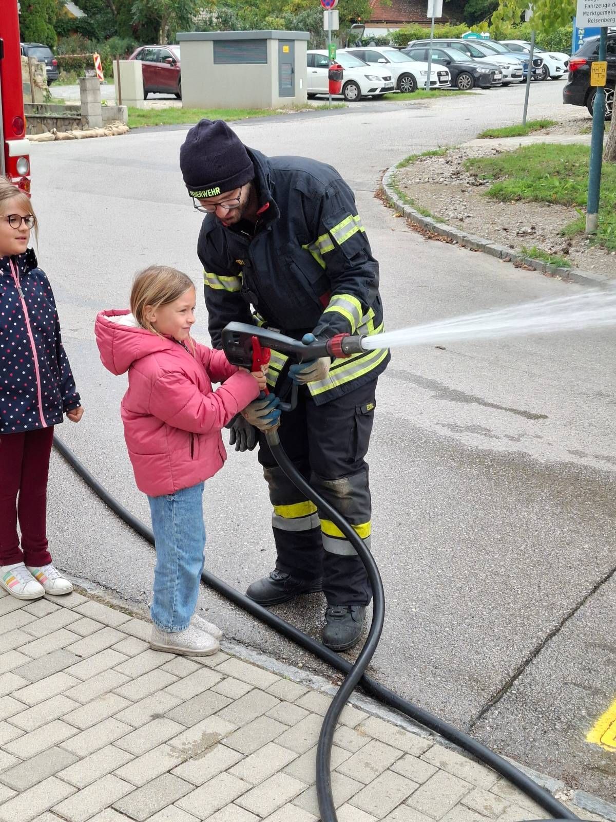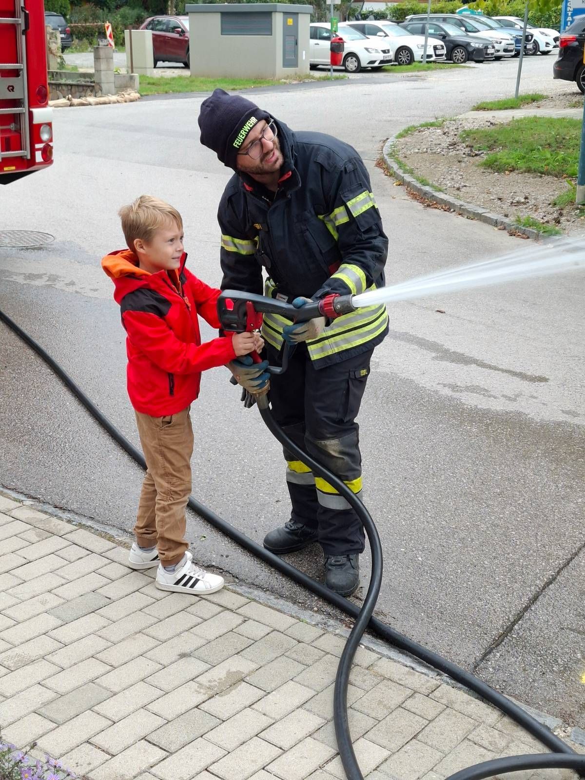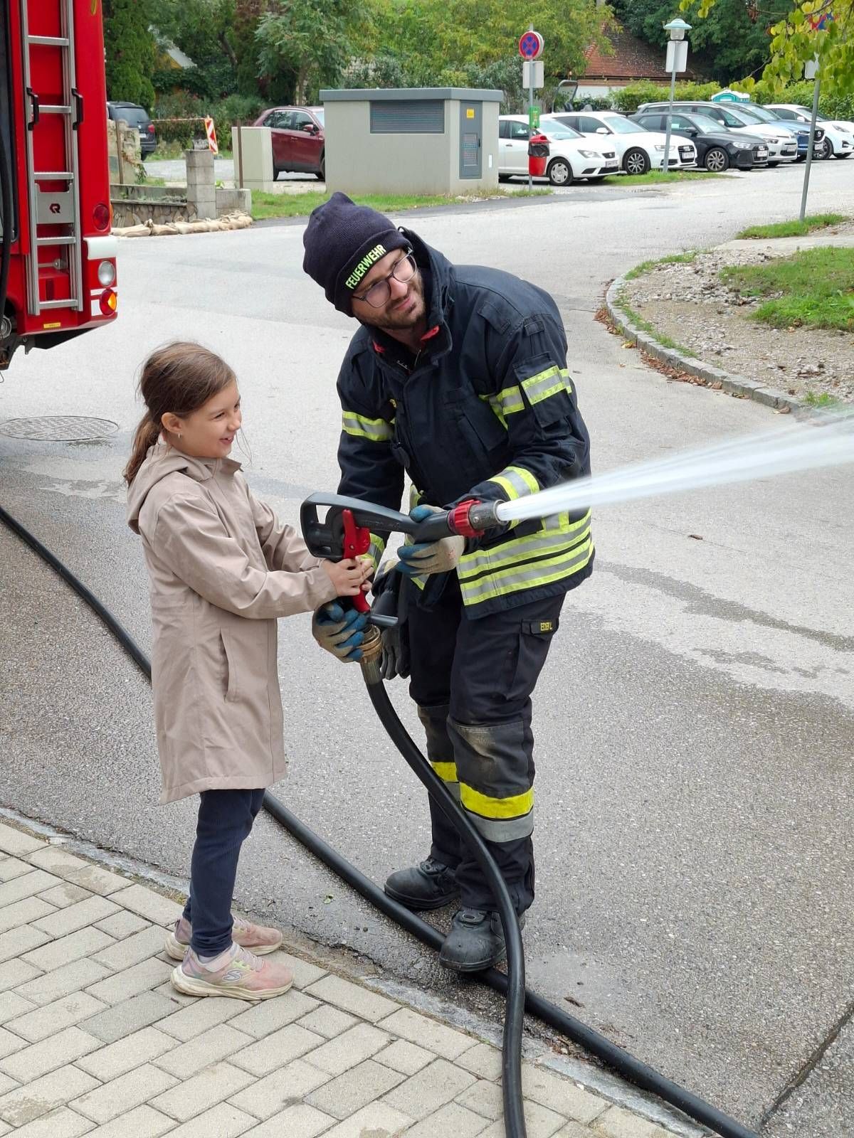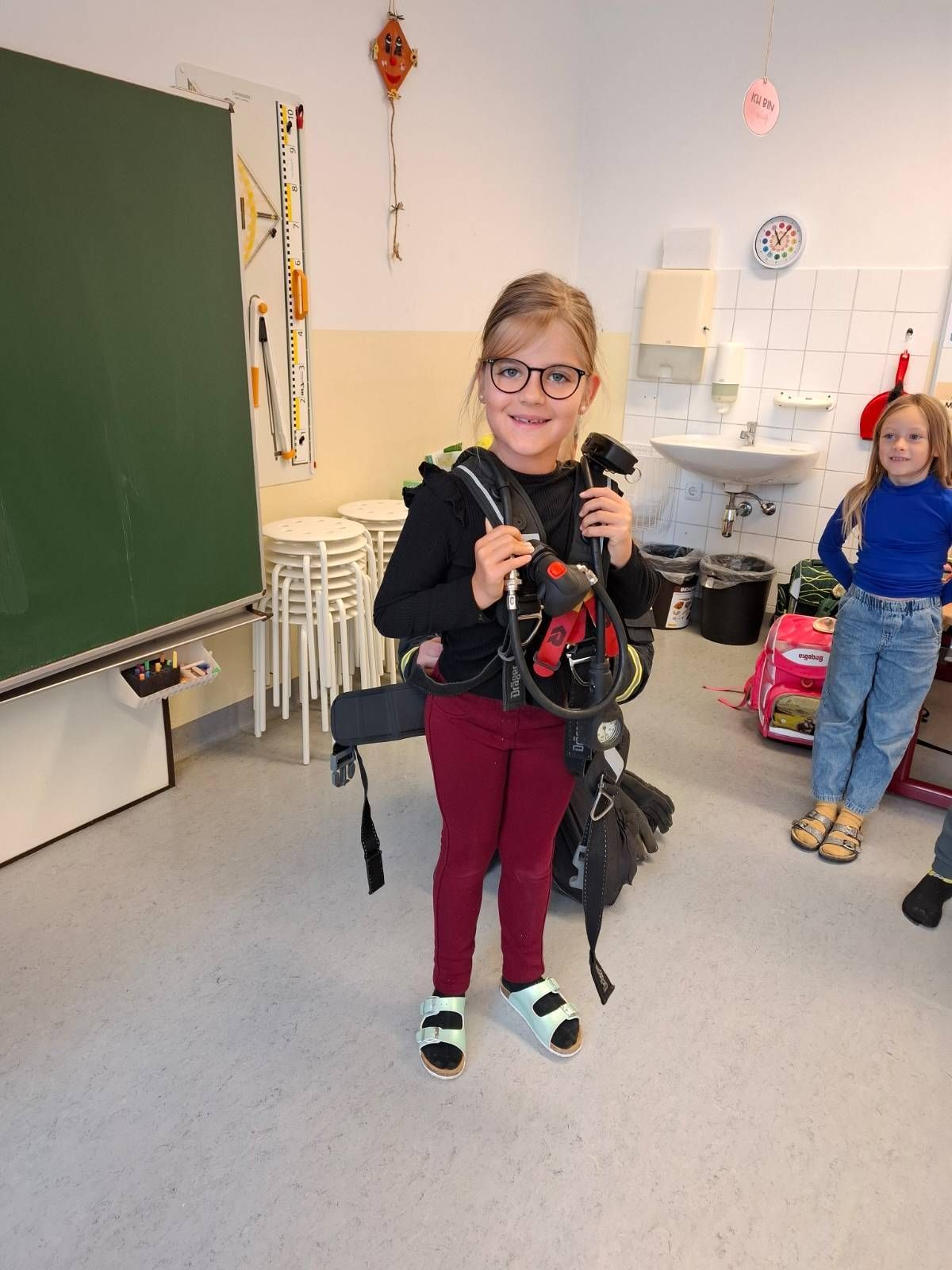 Dieser Grundsatz gilt für das ganze Leben - nicht nur für die Malreihen in der Schule: Was man gut und "automatisch" können möchte, muss man so oft wie möglich üben. Und um in brenzligen Situationen das Richtige zu tun, ist es umso wichtiger, sich mit der Materie zu beschäftigen. Die FF Reisenberg mit ihrem Kommandanten Wolfgang Rieck sieht das genauso, deshalb haben wir gleich in den ersten Wochen des neuen Schj. mit einer "Räumübung" begonnen: so schnell wie möglich die Schule zu verlassen, wenn dies notwendig ist. Und das hat auch ganz toll geklappt! Sogar die Kinder im Turnsaal verließen, zwar widerwillig, jedoch notwendigerweise, das Schulgebäude - und wir waren spitze in der Zeit. Das Wetter hat es nicht so gut mit uns gemeint - auch kein Problem, denn in diesen Fällen flüchten wir uns in den Pfarrhof, wo wir auf die Freigabe der Schulräumlichkeiten durch die FF warten. Hernach durften alle die Atemschutzgeräte genauer unter die Lupe nehmen, auch gab es noch genügend Zeit für Fragen und Anliegen der Kinder in den warmen Klassenräumen. Vielen Dank an unsere ehrenamtlichen Mitarbeiter/innen bei der FF Reisenberg - für ihre Zeit und ihre ständige Verfügbarkeit, wenn es um die Sicherheit der Reisenberger/innen geht!