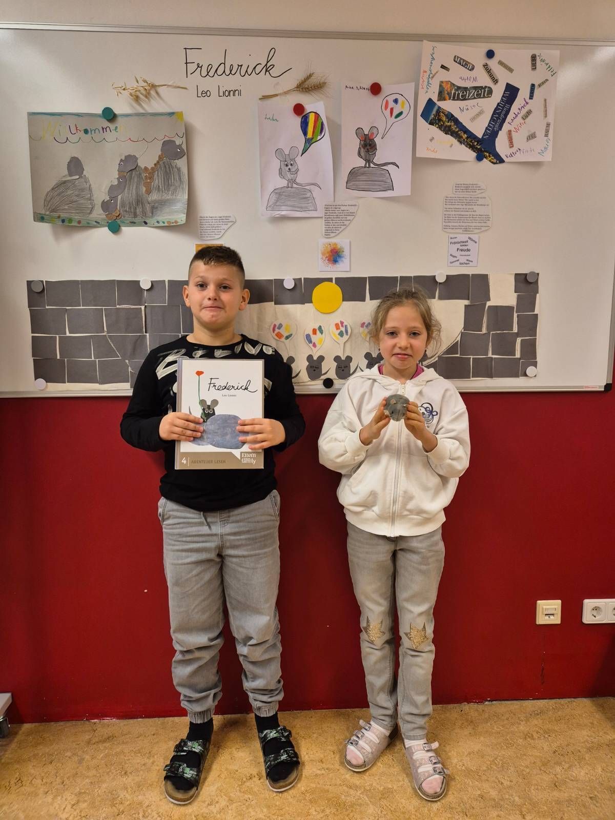 Die Geschichte von der faulen Maus Frederick, die im Sommer "faul herumliegt" und Sonnenstrahlen und schöne Augenblicke einfängt, um sie dann im düsteren Winter an die Freunde weiterzugeben, anstatt den anderen Mäusen beim Befüllen der Vorratskammern zu helfen, kennen viele unter uns. Was man aber anhand einer tollen Geschichte alles lernen kann, das können unsere Kinder im Deutschförderkurs erzählen. Und das beste Geschenk für die Lehrerin ist wohl einer der schönsten Aussprüche in der Schule: "Frau Lehrerin, die anderen Kinder sind arm - sie müssen in der Klasse lernen, wir dürfen spielen." Das wohl größte Kompliment für den Unterricht, den eine Lehrperson für ihre Arbeit bekommen kann!