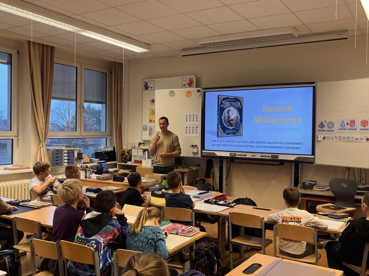 Heute erlebten wir eine ganz besondere Autorenlesung: Martin Hahn besuchte uns in der Schule und las aus seinem Buch "Theo Thede". Dieses handelt von den Träumen und daraus resultierenden Möglichkeiten der Menschen. Besonders auch unsere Einzigartigkeit wird uns hier bewusst. Vor allem aber auch der Autor Martin Hahn fesselte die Kinder und Erwachsenen mit seinen Erzählungen und Bildern zu seiner eigenen Lebensgeschichte. Aufgewachsen in Österreich, ausgewandert nach Kamerun, wo er eine Schule für Waisenkinder und Kinder aus mittellosen Familien gründete, fand er zwischendurch einen "Abstecher" zum Verfassen von Büchern. Wie gut geht es uns hier in Österreich, wo wir in warmen, freundlichen Klassen sitzen dürfen, und noch dazu kein teures Geld für gute Bildung zahlen müssen. Vielen Dank an den Elternverein, der die Kosten für diese einzigartige Lesung übernommen hat!
