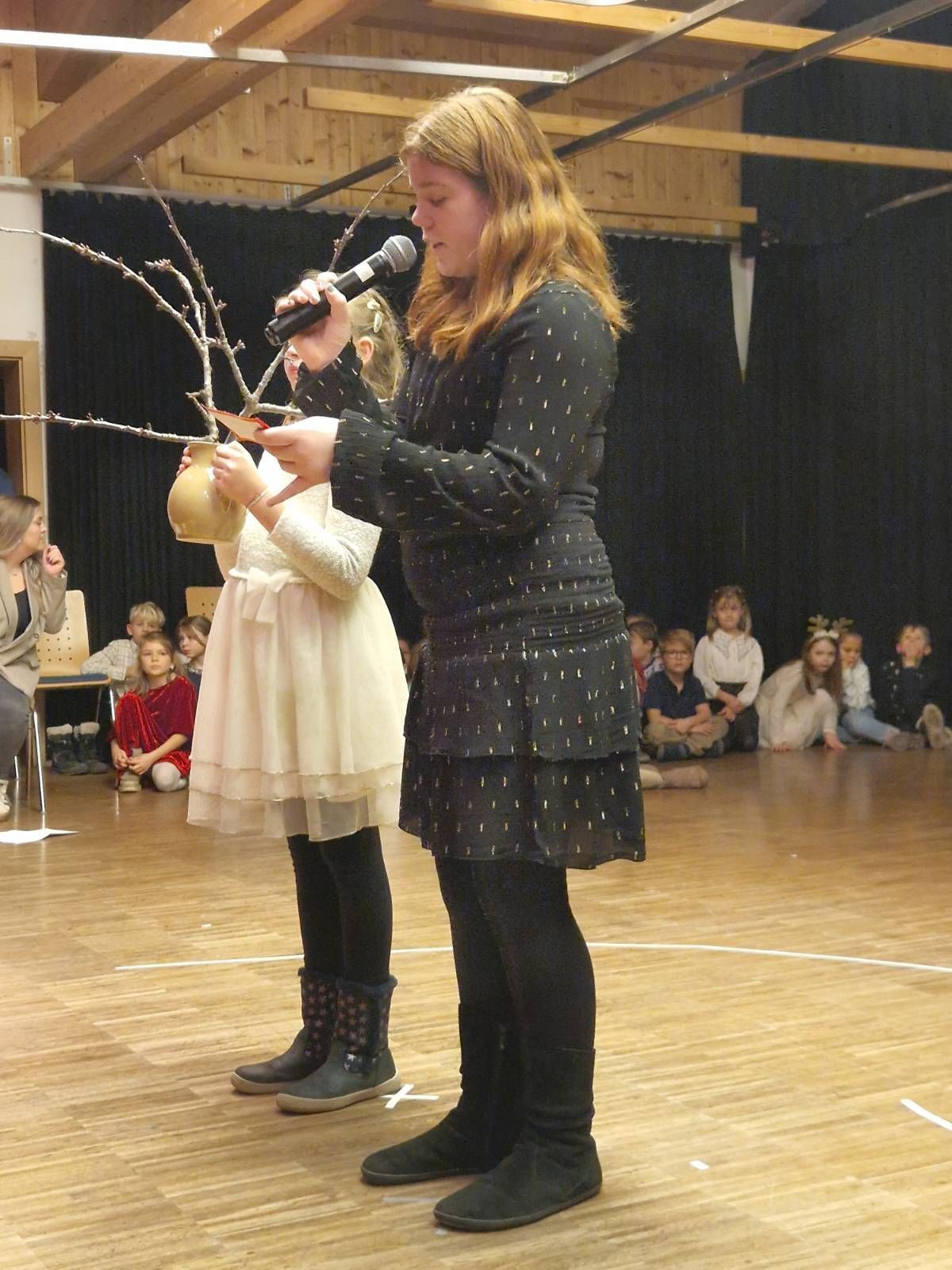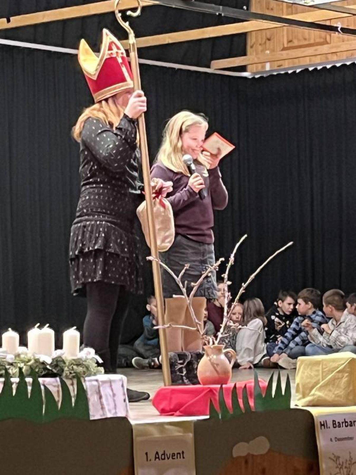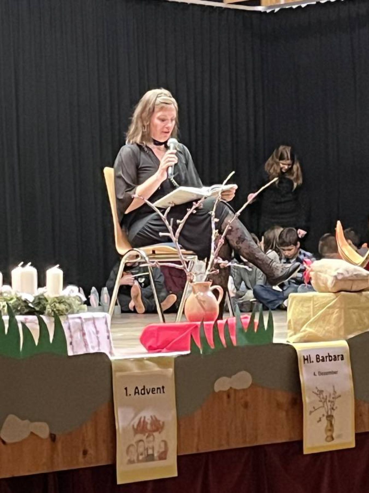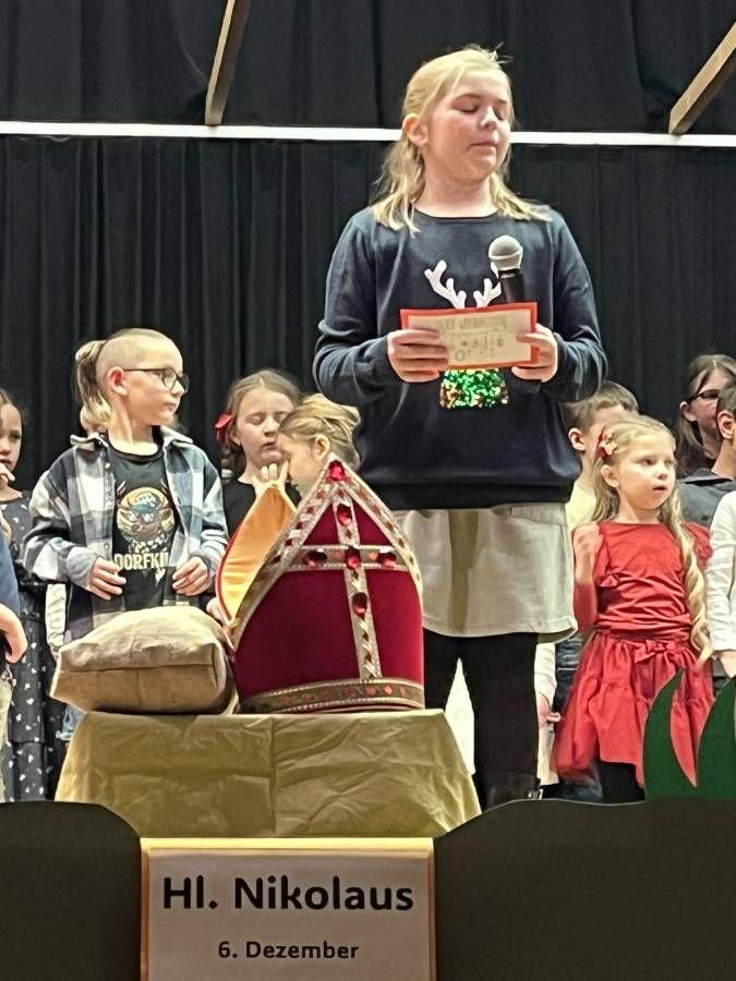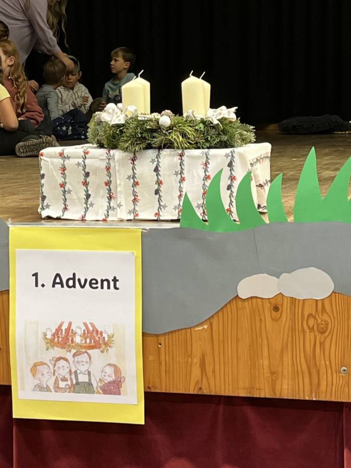 Am Do, dem 18. 12., unternahmen wir gemeinsam mit Eltern, Großeltern und vielen anderen Gästen in der Kulturhalle Reisenberg eine Reise durch die Adventzeit. Unsere Geschichte begann mit dem 1. Adventkranz, den Hr. Johann Hinrich Wichern vor fast 200 Jahren aus einem Wagenrad mit 20 roten Wochentags- und 4 weißen Sonntagskerzen in einem Kinderheim in Deutschland bastelte. Weitere Stationen waren die hl. Barbara, der hl. Nikolaus, die hl. Luzia, der Christbaum und schließlich als Schlusslicht die Krippe im Stall. Viele Lieder, Gedichte und auch ein Tanz wurden den Eltern in einer besinnlichen, feierlichen Atmosphäre geboten. Nach großem Applaus konnten sich alle am Buffet des EVs laben - an dieser Stelle ein ganz großes Dankeschön an alle, die bei den Vorbereitungen, der Durchführung und der Nachbereitung der Feier mitgewirkt haben, denn ohne die Hilfe aller kann so ein Fest nicht zustande kommen! Auch der Musikschule, die uns ebenfalls ohne zu zögern mit ihren Tönen unterstützt, gilt unser großer Dank!