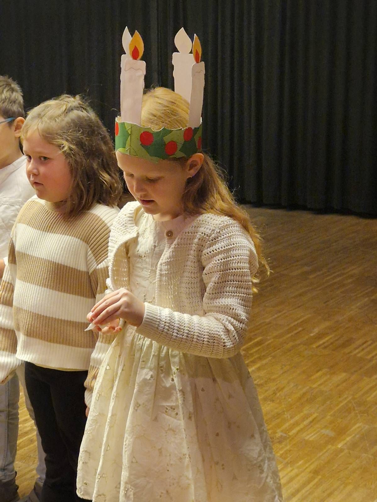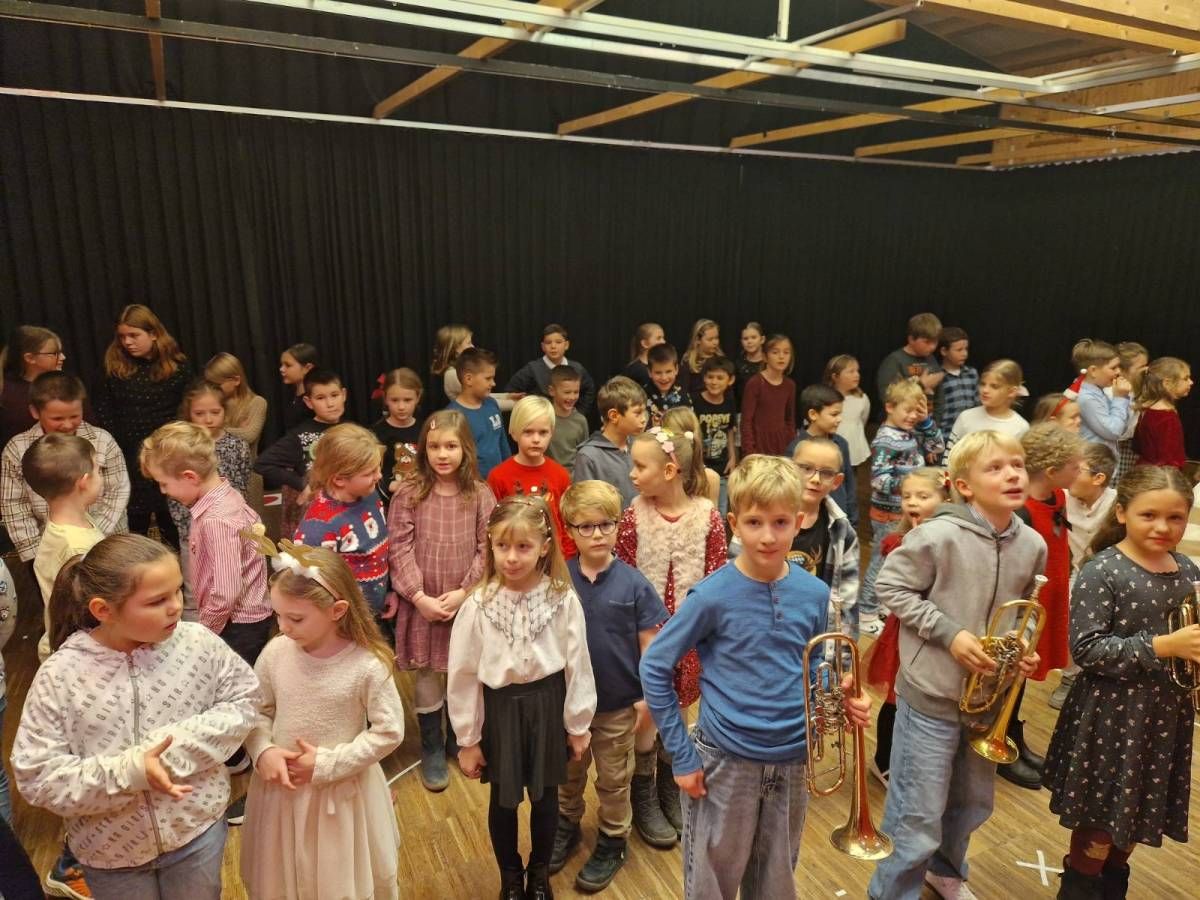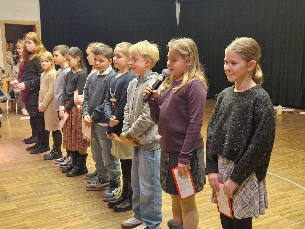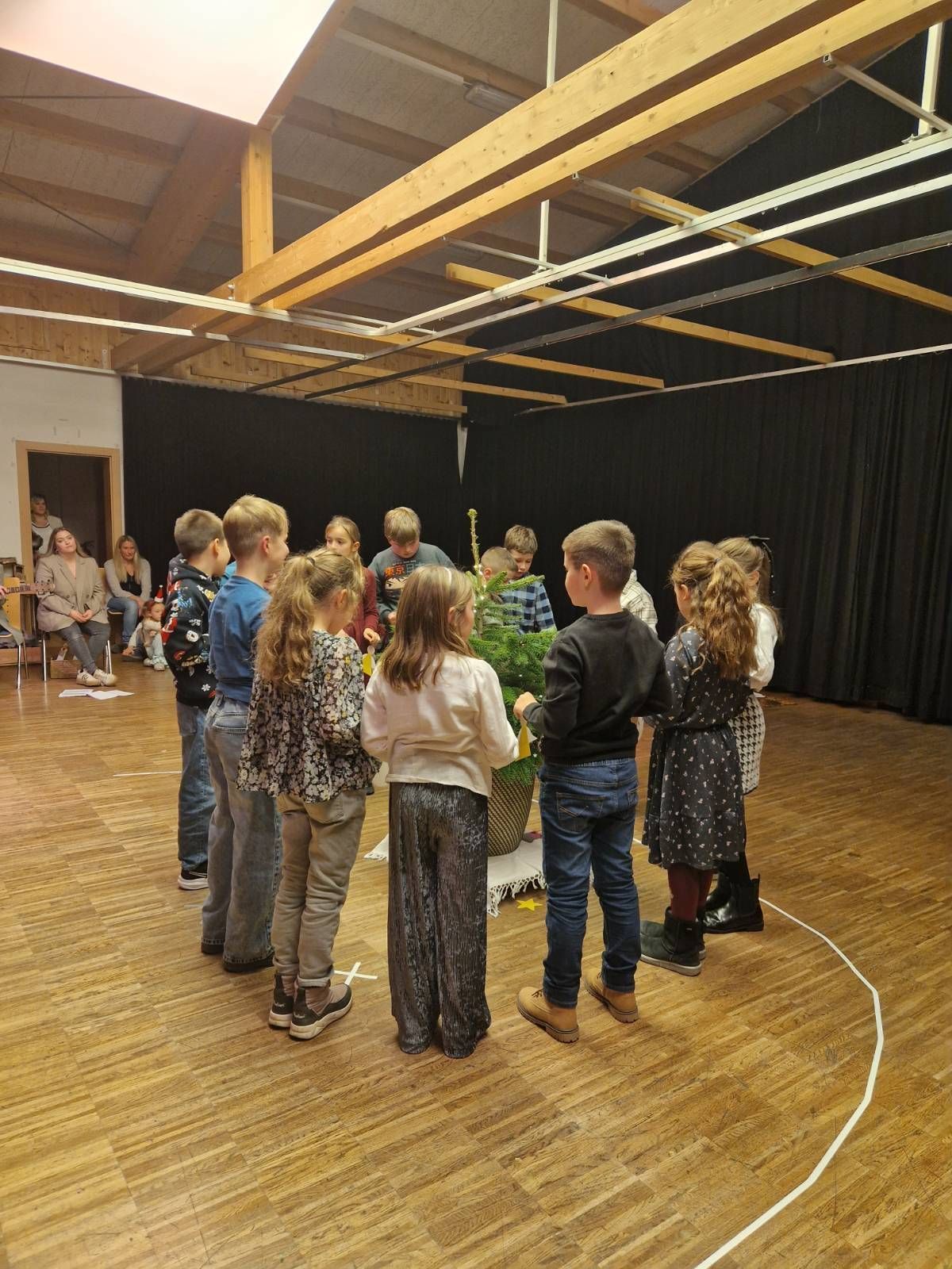 Am Do, dem 18. 12., unternahmen wir gemeinsam mit Eltern, Großeltern und vielen anderen Gästen in der Kulturhalle Reisenberg eine Reise durch die Adventzeit. Unsere Geschichte begann mit dem 1. Adventkranz, den Hr. Johann Hinrich Wichern vor fast 200 Jahren aus einem Wagenrad mit 20 roten Wochentags- und 4 weißen Sonntagskerzen in einem Kinderheim in Deutschland bastelte. Weitere Stationen waren die hl. Barbara, der hl. Nikolaus, die hl. Luzia, der Christbaum und schließlich als Schlusslicht die Krippe im Stall. Viele Lieder, Gedichte und auch ein Tanz wurden den Eltern in einer besinnlichen, feierlichen Atmosphäre geboten. Nach großem Applaus konnten sich alle am Buffet des EVs laben - an dieser Stelle ein ganz großes Dankeschön an alle, die bei den Vorbereitungen, der Durchführung und der Nachbereitung der Feier mitgewirkt haben, denn ohne die Hilfe aller kann so ein Fest nicht zustande kommen! Auch der Musikschule, die uns ebenfalls ohne zu zögern mit ihren Tönen unterstützt, gilt unser großer Dank!